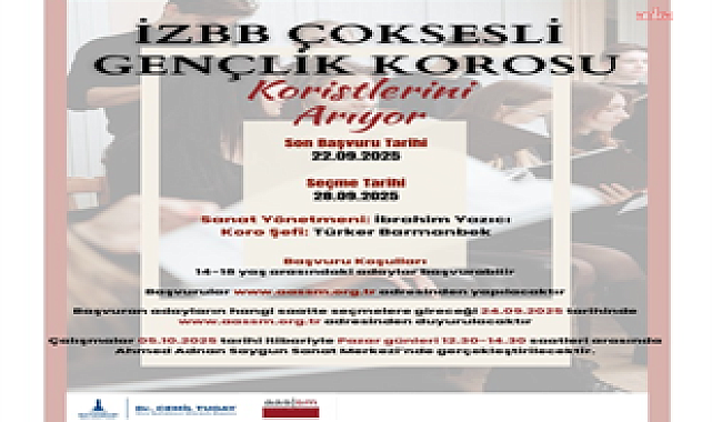 (İZMİR) - İzmir Büyükşehir Belediyesi, yeni kurulacak İzmir Büyükşehir Belediyesi Çoksesli Gençlik Korosu’na korist ve yeni dönem için İzmir Büyükşehir Belediyesi Çoksesli Korosu’na tenor ve bas korist alacak. Yeni kurulacak İzmir Büyükşehir Belediyesi Çoksesli Gençlik Korosu’na korist ve İzmir Büyükşehir Belediyesi Çoksesli Korosu’na tenor ve bas korist alımı için duyuru yapıldı. Hem korist hem de tenor ve bas korist alımları için başvuru koşulları ve şartlar da belirtildi. Her iki koroda yer almak için son başvuru tarihi 22 Eylül olarak belirlendi. Seçmeler ise 28 Eylül’de Ahmed Adnan Saygun Sanat Merkezi’nde yapılacak. İzmir Büyükşehir Belediyesi Çoksesli Gençlik Korosu’na 14-18 yaş arasındaki adaylar başvurabiliyor. Başvurular https://www.aassm.org.tr/ adresindeki “Başvuru Yap” bölümden yapılıyor. Başvuran adayların hangi saatte seçmelere gireceği 24 Eylül tarihinde www.aassm.org.tr adresinden duyurulacak. Seçmeler, Ahmed Adnan Saygun Sanat Merkezi Küçük Salon’da saat 09.00’da İbrahim Yazıcı’nın sanat yönetmenliği, Türker Barmanbek’in koro şefliğinde yapılacak. Çalışmalar, 5 Ekim tarihi itibariyle pazar günleri 12.30-14.30 saatleri arasında Ahmed Adnan Saygun Sanat Merkezi’nde gerçekleştirilecek. İzmir Büyükşehir Belediyesi Çoksesli Korosu’na ise 18 yaş ve üzerindeki erkek adaylar başvurabiliyor. Çalışmalar, 30 Eylül tarihi itibarıyla salı günleri 19.30-21.30 saatleri arasında Ahmed Adnan Saygun Sanat Merkezi’nde gerçekleştirilecek.