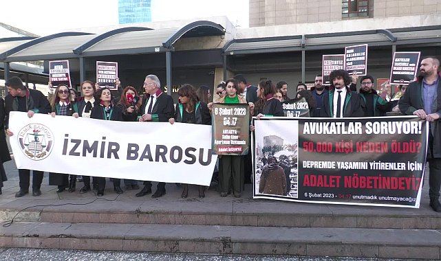 Adalet Peşinde Aileleri Platformu ve İzmir Barosu, deprem davalarında yaşanan hukuksuzluklar için bugün Bayraklı Adliyesi önünde “Adalet Nöbeti” eylemi yaptı. öbete İzmir Baro Başkanı Sefa Yılmaz, depremde hayatını kaybedenlerin yakınları ve çok sayıda avukat katıldı. Nöbette “Daha kalabalık olabilirdik eğer yaşasalardı”, “Katiller taksirle değil, olası kastla yargılansınlar”, “Yastayız, adalette ısrarlıyız” pankartları taşındı.