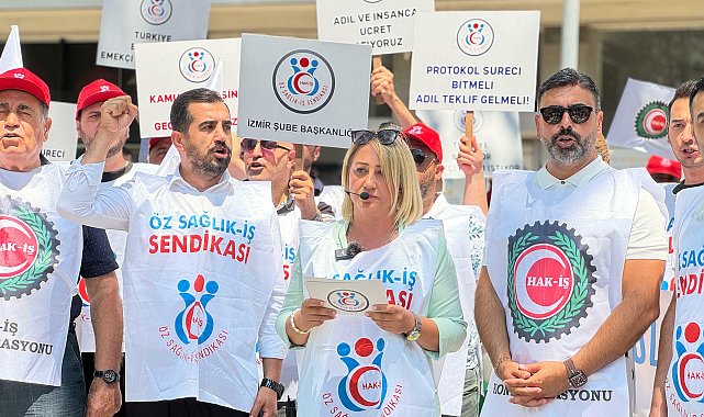 (İZMİR) - İzmir’de Aile ve Sosyal Politikalar İl Müdürlüğü önünde bir araya gelen Öz Sağlık-İş Sendikası üyesi kamu emekçileri, Kamu Çerçeve Protokolü görüşmelerini protesto etti.HAK-İŞ Konfederasyonuna bağlı Öz Sağlık-İş Sendikası İzmir Şubesi üyesi kamu emekçileri, Kamu Çerçeve Protokolü (KÇP) görüşmelerini protesto etmek amacıyla Aile ve Sosyal Politikalar İl Müdürlüğü önünde basın açıklamasında bulundu.Sendika adına açıklamayı Öz Sağlık-İş Sendikası Genel Başkan Danışmanı Nefise Gülseren okudu. Açıklamada, kamu işçilerinin aylardır zam almadan hizmet verdiğine dikkat çekilerek, protokol sürecinde yaşanan tıkanmanın işçilerde hayal kırıklığına yol açtığı belirtildi.Gülseren, şunları kaydetti:"Ocak ayından bu yana imzalanmasını beklediğimiz Kamu Çerçeve Protokolü görüşmelerinde geldiğimiz nokta işçi açısından tam bir hayal kırıklığıdır. Konfederasyonumuza bağlı sendikalarımızın talepleri ve beklentilerinden oluşan KÇP taslağı HAK-İŞ Koordinasyon Kurulu Başkanı ve Öz Sağlık-İş Sendikamız Genel Başkanı Sayın Devlet Sert ve Kurulun diğer üyeleri tarafından 5 ay önce TÜHİS’e sunuldu. Ama 600 bin kamu işçisinin taleplerine 'kurban pazarlığı' şeklinde yaklaşan işveren, 1+1 artışlarla bizlerle dalga geçer gibi tekliflerle geldi masaya."Ailelerimizin yüzüne bakacak yüzümüz kalmadı"İşçi yoruldu. İşçi geçinemiyor. İşçinin omzundaki vergi yükü ağırlaşıyor. İşçi büyüyen Türkiye’den payını alamıyor. İşçi düştüğü söylenen enflasyonun altında ezilmeye devam ediyor. İşçi sofrasına ekmek götüremiyor. İşçi sizden gelecek teklifi beklemekten, değerlendiriyoruz sözünüzden yoruldu. 'Süreç normal seyrinde gidiyor' sözü bizi incitiyor. 'Bugüne kadar işçiye zaten büyük imkanlar sağlandı' sözü bizi kırıyor, değersiz hissettiriyor. Kiramızı ödeyemiyoruz. Kredi kartlarımızı ödeyemiyoruz. Çocuklarımızın gerekli ihtiyaçlarını karşılayamıyoruz. Geçindiremediğimiz ailelerimizin yüzüne bakacak yüzümüz kalmadı. KÇP’de gecikmenin yaşandığı her gün bizim onurumuzu kırıyor, insan gibi yaşama arzumuzu yok ediyor, refaha dair özlemimizi baltalıyor. 600 bin kamu işçisi sadece ve sadece hakkı olanı istiyor. Ama bizim hakkımıza karar verenlerin, onurumuzu ayaklar altına almalarına da yüksek sesle karşı çıkıyoruz."Kamu işçisi tek kuruş zam almadan hizmet etmeye devam ediyor"600 bin kamu işçisi aylardır tek kuruş zam almadan hizmet etmeye devam ediyor. Ama artık bıçak kemiği geçti, şah damarımıza dayandı. İşçinin dayanacak gücü kalmadı.Vatanımızı, devletimizi seviyoruz ama hakkımız olanı da istiyoruz. İşçinin yüzünü güldürecek tek gerçek; KÇP’nin işçinin talepleri doğrultusunda hemen şimdi imza altına alınması ve toplu iş sözleşmelerinin bir an önce bitirilmesidir. Hükümetin ve sayın cumhurbaşkanının işçinin bu haklı talebini göreceğine inanıyoruz."Açıklamanın ardından kamu emekçileri kısa süreli bir oturma eylemi yaptı.