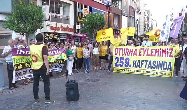 KERİM UĞUREğitim Sen İzmir 2 No'lu Şube, kanun hükmünde kararnamelerle (KHK) çalıştıkları kurumlardan ihraç edilenlerin görevlerine döndürülmeleri talebiyle başlattığı oturma eylemini, 259'üncü haftada da sürdürdü. Eyleme destek veren Eğitim-Sen MYK üyesi Sinan Muşlu, “İhraçlar bizlere yönelik bir politik tutum. KESK'i ve bağlı iş kollarını da bu ihraçlarla kıskaç altına alalım politikasıdır bu" dedi.Karşıyaka Çarşı girişindeki oturma eylemine Eğitim-Sen MYK üyesi Sinan Muşlu’nun yanı sıra çok sayıda sendika üyesi ve İzmir Demokrasi Güçleri üyeleri de destek verdi. “İhraç tecrittir. Tecrit insan hakları ihlalidir. Hak ihlallerine hayır. İşimize geri döneceğiz” ve “Oturma eylemimiz 259. haftasında” yazılı pankartların açıldığı oturma eyleminde sık sık “Asla Yalnız Yürümeyeceksin” ve “Zafer Direnen Emekçilerin Olacak” sloganları atıldı.“KESK’İ VE BAĞLI İŞ KOLLARINI KISKAÇ ALTINA ALMAK İSTEDİLER”Oturma eyleminde konuşan Eğitim-Sen MYK üyesi Sinan Muşlu, şunları söyledi:“İhraç bizlere yönelik bir politik tutum. Onlar da biliyor ki bizim 15 Temmuz darbecileriyle bırakın ilgimizin alakamızın olmasını FETÖ'cü diye adlandırılan kesimle en yoğun mücadeleyi yürütmüş eğitim, bilim emekçileriyiz. Geçmişte araları gayet iyiyken üzerimize saldıkları savcılarla FETÖ'cü denilen savcılarla, FETÖ'cü denilen emniyet mensuplarıyla neredeyse üzerinde soruşturma açılmadık arkadaşımız bırakılmamıştı. 20 Temmuz'da onları ihraç etmeye başladıktan sonra fırsat bu fırsatken bize en güçlü muhalefeti yapan bir emek örgütü olan KESK'i ve bağlı iş kollarını da bu ihraçlarla kıskaç altına alalım politikasıdır bu. Hem emekçilerin gözünde bizleri uzaklaştırabilecek, korkulması gereken bir emek örgütü gibi gösterdiler. Hem bizi ekonomik darboğaza sokacaklarını düşündüler hem de başta KESK ve iş kolları olmak üzere Eğitim Sen'in eğitim emekçilerinden uzaklaşacağını kopacağını zannettiler.” VELİLERE ÇAĞRI: "AYAĞA KALKIN, OKULLARA DİLEKÇE VERİN VE ÇEDES PROJESİNİ ONAYLAMAYIN"Muşlu, ÇEDES Projesi ile ilgili şunları dile getirdi:“Eğitime laiklik karşıtı uygulamaları dayattıkları yerlerde sadece ÇEDES, bunun gibi yüzlerce protokol var ve Türkiye'nin her yerinde uygulanıyor. Eğitim alanına manevi danışman adı altında imamlar görevlendiriliyor, vaizler görevlendiriliyor. Kur'an öğreticileri görevlendiriliyor. Hiçbir inanca saygısızlığımız yok. İnançların tamamına saygımız var. Her inanca eşit yaklaşılmalıdır. İmam görevini yapmalıdır. Mesleğine saygımız var. Ama okulda değil. Camide. Bir öğretmenin camiye gidip camiyi yönettiği görülmüş mü? Bir öğretmenin gidip üzerine vazife olmadığı halde Kur'an öğrettiği görülmüş mü? Ama adı çevreme duyarlıyım değerlerime sahip çıkıyorum adı altında yürütülen bu projeyle İzmir'de 842 okula imam görevlendirildi vaiz görevlendirildi. Kur'an öğreticisi görevlendirildi. Adı ney? Manevi danışman. Bu projenin mutlaka iptal edilmesi gerekiyor. Sadece bu proje değil. Benzer tüm projelerin iptal ettirilmesi gerekiyor. Velilerimize çağrımızdır; Ayağa kalkın. Okullara dilekçe verin. ÇEDES projesini onaylamıyoruz. Çocuğumu bu proje kapsamındaki çalışmalara dahil etmeyin deyin. Bu proje kapsamında öğrencilerimizin telefon bilgileri, kimlik vakıflarla, diyanetle, müftülükle paylaşılıyor. Velilerimize çağrımızdır. Okullara dilekçe verin. Çocuğumun kişisel bilgilerini başka kurumlarla paylaşamazsınız deyin.” VEYSEL BEYAZ: TÜRKİYE CUMHURİYETİ TARİHİNDE EN BÜYÜK KAMU EMEKÇİSİ KIYIMI YAŞATILDIEylemde, ortak basın açıklamasını da Eğitim-Sen İzmir 2’Nolu Şube Başkanı Veysel Beyaz yaptı. Beya açıklamasında şu ifadelere yer verdi:“Türkiye Cumhuriyeti tarihinde en büyük kamu emekçisi kıyımı yaşatıldı. Darbe unsurlarıyla ilişkilendirilerek işlerinden ihraç edilen arkadaşlarımız ise her zaman olduğu gibi direndiler ve direniyorlar. 136 bin kişilik ihraç furyası içerisinde 4 bin civarındaki Kamu Emekçileri Sendikaları Konfederasyonuna bağlı yönetici ve üye arkadaşımız da işlerinden ihraç edildi. Uzun süren ve adına OHAL Komisyonu denilen oyalama aparatı ile arkadaşlarımız ikinci kere cezalandırdılar. Uluslararası hukuk normlarına aykırı olarak yürütülen süreci uzatmak için yargıyı da kullanarak göreve iadelerde ret kararı verdiler. Göreve iade kararı verilen arkadaşlarımıza 'arşiv kaydı' ve 'güvenlik soruşturması' bahanesiyle süreci tıkadılar. İlk günden bu yana gerek ulusal gerek uluslararası tüm mecralarda dedik: 'Hukuksuzluğunuz bizi yıldırmaz alanlarda olacağız' diye. İşte devam ediyoruz, 259 haftadır alanlardayız. Arkadaşlarımız tüm Anadolu insanı için bir umuttur, mücadeleyi bırakmayacağız, devam ediyoruz, 259 haftadır alanlardayız. Bizlere giydirmeye çalıştığınız bu deli gömleğini giymeyiz, direneceğiz, direniyoruz, 259 haftadır devam ediyoruz. Bizler İzmir Emek ve Demokrasi Güçleri’nin bileşeni olarak KHK’lerle işlerinden ihraç edilen tüm arkadaşlarımızın bir an önce işlerine dönmelerini istiyor ve bu mücadeleye omuz veriyoruz. İhraç arkadaşlarımız ülkenin emek, barış ve demokrasi mücadelesi tarihine adlarını altın harflerle yazdırdılar. Onları bu haklı mücadelelerinde yalnız bırakmayacağız ve en son arkadaşımız işine iade edilene kadar mücadelemize devam edeceğiz.”
