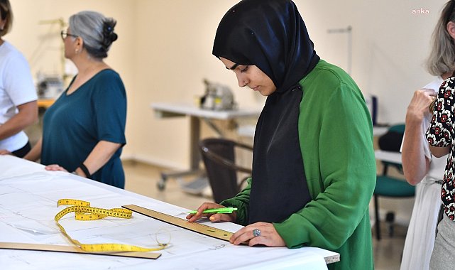 (İZMİR)- İzmir Büyükşehir Belediyesi Kadın Çalışmaları Şube Müdürlüğü’nün Meslek Fabrikası iş birliği ile hayata geçirdiği Mor Makas Dikiş Kursu başladı. Makas ve mezuraları eline alan kadınlar, kalıp çıkarmayı öğrenip dikiş makinesinin başına geçmeye hazırlanıyor.İzmirli kadınlar, hem yeni bir beceri kazanmak hem de ekonomik özgürlüklerini elde etmek için harekete geçti. İzmir Büyükşehir Belediyesi Kadın Çalışmaları Şube Müdürlüğü ve Meslek Fabrikası iş birliği ile başlatılan Mor Makas Dikiş Kursu, Örnekköy’de bulunan İzmir Büyükşehir Belediyesi Anahtar Kadın Çalışmaları Bütüncül Hizmet Merkezi’nde çarşamba, perşembe ve cuma günleri 09.30-14.30 saatleri arasında veriliyor. Dikişe dair temel bilgilerin aktarıldığı kursta hem öğrenen hem de keyifli vakit geçiren kadınlar, kendi giysilerini dikmeyi ve ürettikleri kıyafetleri satmayı hedefliyor.Kadın odaklı çalışmalar