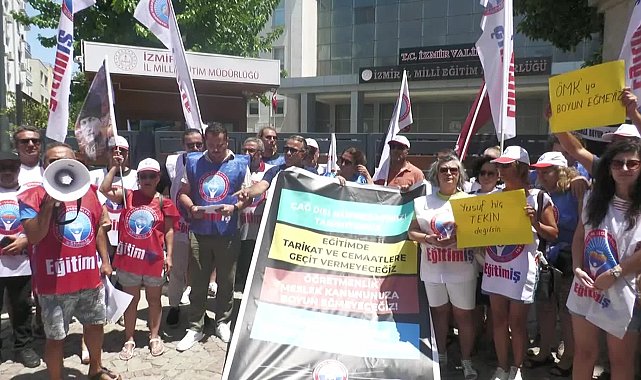 (İZMİR) – Eğitim-İş Sendikası, Öğretmenlik Mesleği Kanun Teklifi’ne karşı ülke genelinde eş zamanlı eylem kararı kapsamında İzmir İl Milli Eğitim Müdürlüğü önünde basın açıklaması yaptı. Açıklamanın ardından teklifle “öğretmenliğin itibarının öldürüldüğü” belirtilerek İl Milli Eğitim Müdürlüğü önüne siyah çelenk bırakıldı.Sendikaların ve eğitimcilerin Öğretmenlik Mesleği Kanun Teklifi’ne karşı mücadelesi sürüyor. ‘Öğretmenlerin itibarsızlaştırıldığı ve özlük haklarının korunmadığı’ gerekçeleriyle eleştirilen kanun teklifine karşı Eğitim-İş Sendikası, bugün ülke genelinde eş zamanlı basın açıklaması yaptı.İzmir’deki İzmir İl Milli Eğitim Müdürlüğü önünde yapılan açıklamada, eğitimciler “Tarikatın bakanı Yusuf Tekin istifa”, “Dur de dur de ÖMK’ya dur de” ve “Meslek kanunu dediniz, ihanet ettiniz” sloganları atarak teklifin geri çekilmesi çağrısında bulundu.Müdürlüğe ‘sendika ayrımı’ tepkisiSendikanın açıklamayı Milli Eğitim Müdürlüğü bahçesinde yapmasına izin verilmedi. Eğitim Bir-Sen’in haziran ayında bahçede açıklama yaptığına dikkat çekilerek sendikalar arasında ayrımcılık yapıldığı vurgulandı.Şen: “Ben yaptım oldu’cu tavrını sürdürmektedir”Eğitimciler adına açıklamayı Eğitim-İş İzmir 1 Nolu Şube Başkanı Özgür Şen okudu. Kanun teklifinin TBMM Genel Kurulu’ndan geçmesine izin verilmeyeceği belirtilen açıklamada, şöyle dendi:“Uzun bir süredir halkın istemediği, razı olmadığı, fayda bulmadığı kararları; halka rağmen çıkartarak, ülkemizin köklü demokrasi kültürünü hiçe sayan iktidar, bir gericileştirme laboratuvarı olarak gördüğü eğitim alanında da bu ‘ben yaptım oldu’cu tavrını sürdürmektedir.Sadece mesleğimizin değil, milli eğitim sisteminin de üzerine kara bir bulut gibi çöken Öğretmenlik Meslek Kanunu; öğretmenlerin, eğitim emekçilerinin, uzmanların, eğitimin diğer bileşenleri ve ilerici kamuoyunun itirazlarına rağmen, bu hafta TBMM’den geçirilmek istenmektedir.