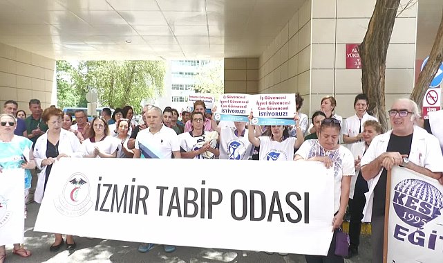 Şiddeti üreten, bu sistemin kendisi biliyoruz. Sağlık sistemindeki kargaşa ve huzursuzluk nedeniyle, hekimlerimiz, hemşirelerimiz, ebelerimiz, teknikerlerimiz, teknisyenlerimiz; genel idari, teknik ve yardımcı hizmetler sınıflarındaki çalışanlar gibi sağlık ekibinin hiçbir üyesi artık nefes alamıyor. 'Nefes alamıyorum, imdat!' demeyen kimse kaldı mı aramızda? Daha ne kadar dibe vurabiliriz? Artık göğsümüzü gere gere hekimim, hemşireyim, ebeyim, sağlık çalışanıyım demeyi geçtik, çalışanlar olarak memurum demekten utanır hale geldik. Ne yapacağız? Kafamızı öne eğip 'boş ver, böyle gelmiş böyle gider, başımı derde sokmayayım' mı diyeceğiz? Yoksa bize yapılan zulme sesimizi çıkarıp tepkimizi mi göstereceğiz? Tabii ki, demokratik tepkimizi meşru zeminde göstererek, hep beraber, tek bir ağızdan artık yeter, şiddete son verin uygun çalışma ortamları sağlayın diyeceğiz."Yaşatabilmemiz için öncelikle bizlerin yaşaması gerekmektedir"Biliyoruz ki sağlık, en temel haktır. Ancak yaşatabilmemiz için öncelikle bizlerin yaşaması gerekmektedir. Dün olan sağlıkta şiddet olayında yaklaşık 1 yıldır bıçaklanma nedenli yoğun bakımda tedavi gören ve vefat eden hastanın yakınlarına Dr. Emrah Keskin ve Dr. Hazal hanım tarafından bilgilendirme yapılmıştır. Bu esnada vefat eden kişinin kuzeni olduğu ifade edilen kişi defaatle Dr. Emrah beyin kafasına ve gözüne vurarak ve Dr. Hazal hanımı da darp etmiştir. Bilgilendirme alanında güvenlik kameralarının olmaması, güvenlik görevlisi arkadaşların özür dilemek amaçlı hasta yakınlarını defaatle hekim arkadaşımızla yan yana getirmesi de olayın tarafımızca vehametini göstermektedir."İktidara değil, Hipokrat’a sadık kalın"Bizleri koruyamamakla görevli güvenlik güçlerinin hasta yakınları ile arkadaşlarımızı tekrar bir araya getirme çabası sonrası arkadaşlarımızın bir kez daha ölümle tehdit edilmesine neden olmuştur. bu olay da göstermektedir ki hastanemizde ciddi bir güvenlik zafiyeti bulunmaktadır. Bu kadar vahim bir olayda ne yazık ki hastane yönetiminden hiçbir meslektaşımızın hekim arkadaşlarımızı aramaması bir o kadar düşündürücü ve üzücüdür. Şu saate kadar İl Sağlık Müdürlüğü’nden herhangi bir açıklama dahi yapılmamıştır. Bu da sağlıkta şiddetin idareciler tarafından ne kadar münferit bir olay olarak algılandığının acı bir göstergesidir. Unutmayın ki sizler de hekimsiniz ve o koltuklar kalıcı değildir. Sizlere şunu hatırlatmak isteriz iktidara değil, Hipokrat’a sadık kalın. Bizler usulsüz geçici görevlendirmelerde trafik kazası geçirerek ölmek istemiyoruz. Bizler hasta ve hasta yakını şiddetine maruz kalarak ölmek istemiyoruz. Bizler mobbinge maruz kalıp intihar etmek istemiyoruz. Yaşamak ve yaşatmak istiyoruz.""Şiddet olaylarıyla bir araya gelmek zorunda bırakılıyoruz"Hekim Birliği Sendikası İzmir Şubesi Yönetim Kurulu Başkanı Dr. Bahar Sarı Narğis ise "Maalesef daha üç ay önce Şehir Hastanesi’nde üzücü bir olayla bir araya gelmiştik. Hep bu üzücü şiddet olaylarıyla bir araya gelmek zorunda bırakılıyoruz. İdareciler tarafından hala bir adım atılmış değil. Randevu taleplerimiz, şikayet dilekçelerimiz kabul görmüş değil. Biz hastalarımıza yardımcı olmak isterken bu şiddet olaylarına maruz kalmak istemiyoruz. Artık bunu yeterince kolay anlatabildiğimizi düşünüyoruz. Demokratik yollarla anlatabildiğimizi düşünüyoruz. Sesimizi duymayan idareciler ve yönetimler bir sonraki dönemde belki aramızda olacaklar. Onlar şiddete uğradıklarında yine biz onların hakkını savunacağız. Yine bu meydanlarda onlarla birlikte olacağız" diye konuştu.