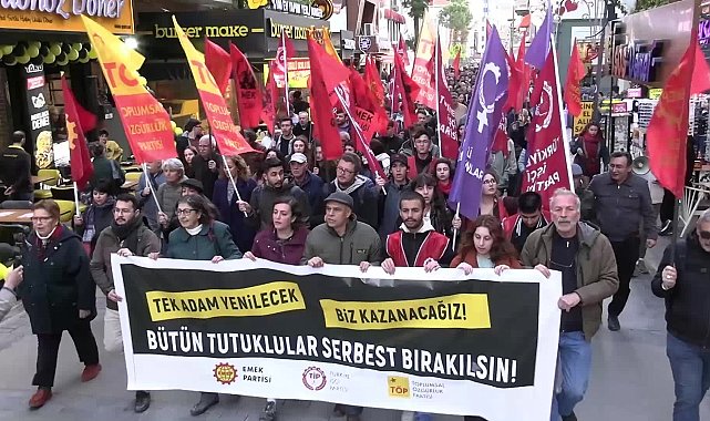 (İZMİR) – Emek Partisi (EMEP), Türkiye İşçi Partisi (TİP) ve Toplumsal Özgürlük Partisi (TÖP) İzmir örgütleri, İstanbul Büyükşehir Belediye Başkanı Ekrem İmamoğlu, İBB yöneticileri ve öğrencilerin tutuklanmasına yönelik operasyonları protesto etti.Alsancak SGK önünde bir araya gelen topluluk, sloganlar eşliğinde İzmir Barosu önüne yürüyerek burada ortak basın açıklaması gerçekleştirdi. Ortak açıklamayı Emek Partisi İzmir İl Başkanı Elif Çuhadar okudu. “Her yeni güne bir saldırı dalgasıyla uyanıyoruz” diyerek sözlerine başlayan Çuhadar, sendikacı ve gazetecilerin tutuklanmasını, grev yasaklarını, demokratik haklara yönelik baskıları, artan zamları ve kayyım atamalarını eleştirerek, İstanbul Cumhuriyet Başsavcılığı’nın talimatıyla İBB Başkanı Ekrem İmamoğlu ve 105 kişi hakkında gözaltı kararı verildiğini, 51 kişinin ise tutuklandığını hatırlattı.İktidar tarafından Cumhurbaşkanı Erdoğan’ın karşısına kazanabilecek Cumhurbaşkanı adayı olarak çıkacağı belli olduktan sonra Ekrem İmamoğlu'nun saf dışı bırakılmak için bütün devlet imkanlarının harekete geçirildiğini söyleyen Çuhadar, şu ifadeleri kullandı:"İstanbul Cumhuriyet Başsavcılığının talimatı ile milyonlarca İstanbullunun oyunu almış Büyükşehir Belediye Başkanı Ekrem İmamoğlu ile İBB'de çeşitli görevlerde bulunan 105 kişi gözaltına alındı, ardından 51 kişi tutuklandı. Ekrem İmamoğlu’nun diplomasının iptal edilmesi kararının mürekkebi kurumadan yapılan baskınlarla gerçekleşen gözaltılar ve tutuklamalar yargı sopasının iktidar için ne kadar elverişli bir araç haline getirildiğini bir kez daha gösterdi. Bir belediye başkanı, Cumhurbaşkanı Erdoğan’ın karşısına kazanabilecek Cumhurbaşkanı adayı olarak çıkacağı belli olduktan sonra kendisini saf dışı bırakmak için bütün devlet imkanları iktidar tarafından harekete geçirildi.""Tarihte örnekleri görüldüğü gibi başarılı olamayacaklardır"Türkiye’nin dört bir yanında gençlerin, kadınların ve emekçilerin alanlara çıkarak adalet ve demokrasi talebinde bulunduğunu ifade eden Çuhadar, protestolara yönelik gözaltı ve tutuklamaların yanı sıra, basın emekçilerine uygulanan baskılara da dikkat çekti. Çuhadar, “İktidar medyası halkın direnişini sansürlerken, gerçekleri yayınlayan televizyonlara RTÜK tarafından cezalar yağdırıldı. Tek adam yargı kılıcını savunmaya da salladı. AKP iktidarının ülkeyi sürüklediği kuralsızlık, baskı, şiddet dört bir koldan her alana yöneldi. Seçilmişleri güdümlü yargı aracılığıyla yerinden etme hamlelerine, dünyanın en büyük ve köklü barolarından İstanbul Barosu yönetiminin görevine son verilmesi kararı da eklendi. Yargının, iktidara biat etmeyen Avukatları, yargının çürümüşlüğünün en çıplak halinin ortaya serildiği şu günlerde bir kat daha baskılanmak isteniyor. Avukatlar adliyeye-karakola alınmadı, keyfi uygulamalarla görevlerine engel olundu ve hatta İzmir'de, İstanbul'da işkence ve gözaltına maruz kaldılar. İstanbul Büyükşehir Belediyesine 3 bin polisle operasyon yaptırıp gizli tanık ifadeleriyle 16 milyonluk kentin Belediye Başkanını tutuklatıp halkın seçme ve seçilme hakkını, kendi iktidar hırsıyla ortadan kaldırmaya girişenler, daha önce tarihte örnekleri görüldüğü gibi başarılı olamayacaklardır" dedi."İzmir’de 19 kişi tutuklu"Çuhadar, Türkiye genelinde 299 gencin tutuklu olduğunu, İzmir’de ise aralarında siyasi parti il yöneticilerinin de bulunduğu 19 kişinin cezaevinde tutulduğunu belirten Çuhadar şunları söyledi:"Tek adam iktidarı, üniversitelerde boykot büyümesin, kent meydanlarına taşan mücadelemiz zayıflasın diye direnişin öncülerine, örgütlü gençlere tek tek tutuklama kararı çıkartıyor. Toplam 299 genç tutuklu. İzmir’de ise içlerinde siyasi parti il yöneticilerinin de bulunduğu 19 kişi sarayın talimatlarıyla, uydurma suçlarla cezaevlerinde tutuluyor. Boşuna uğraşıyorsunuz. Ne gözaltı furyanız, ne uydurma gerekçelerle çıkardığınız tutuklama kararları ne baştan aşağı talimatla çalışan yargınız işe yarayacak. Bu direniş büyüyecek! Bu ülkenin işçi ve emekçileri, halkları, tek adam iktidarının bu fütursuzluğuna teslim olmayacaktır. İşçi ve emekçileri, duyarlı tüm kesimleri, bu iktidar darbesine karşı ses yükseltmeye, mücadele etmeye devam edecek. Hayatın akışına müdahale edecek genel grev genel direnişi örgütlemek de dahil, tüm tutuklu arkadaşlarımız serbest kalana ve tek adam iktidarı gidene kadar mücadelemiz sürecek."
