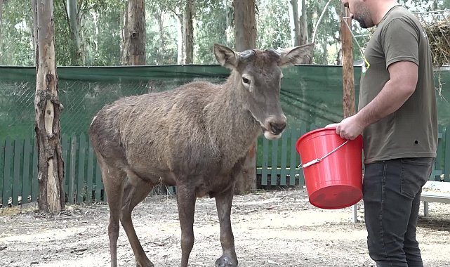 Ateşli silahla sol ön ayağından vurulduğu ve ayağında kırık olduğu için artık doğaya salınma imkanı bulunmayan erkek geyik, veteriner hekimlerin gözetiminde parkta kendisi için özel olarak oluşturulan alanda yaşayacak.