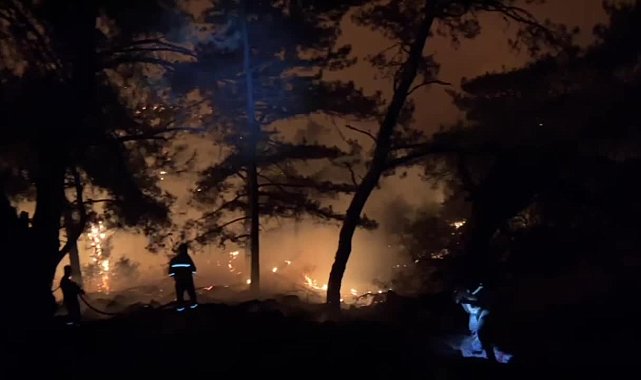 Yangına, İzmir Orman Bölge Müdürlüğü'ne ait 25 arazöz, 4 su ikmal, 3 dozer ve 6 yer ekibi ile müdahale ediliyor.
