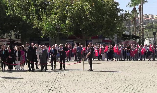 (İZMİR) - İzmir'in işgalinden kurtuluşunun 103. yılında düzenlenen kutlamalar kapsamında, Konak Atatürk Meydanı’nda Bayrak Töreni düzenlendi. Törende, atlı süvarilerin İzmir’e girişi canlandırıldı ve Hükümet Konağı’nda Türk Bayrağı göndere çekildi.İzmir'in düşman işgalinden kurtulduğu 9 Eylül 1922'nin 103. yıl dönümü, İzmir Valiliği koordinesinde kutlanmaya başlandı.Kutlamalar kapsamında, Bayrak Töreni düzenlendi. Konak Atatürk Meydanı’nda düzenlenen tören, protokol üyelerinin gelmesi ile saat 10.30'da başladı.Törende; İzmir Valisi Süleyman Elban, Büyükşehir Belediye Başkanı Cemil Tugay, Ege Ordusu ve Garnizon Komutanı Orgeneral İrfan Özsert ve milletvekilleriyle kamu ve askeri yetkililer hazır bulundu.Törende ilk olarak süvari birliklerinin İzmir’e girişi ve İzmir’i kurtuluşu temsili olarak canlandırıldı ve askerler tarafından İzmir Valiliği binasında Türk Bayrağı göndere çekildi.Hükümet Konağı’na Türk Bayrağı’nın çekilmesinin ardından atlı birlik komutanına, Vali Elban tarafından Türk bayrağı ve Kur'an-ı Kerim takdim edildi. İzmir Büyükşehir Belediye Başkanı Cemil Tugay ise atlı birlik komutanına plaket takdim etti. Süvari komutanının, Vali Süleyman Elban'a tekmil verip alandan ayrılmasıyla bayrak töreni sona erdi.