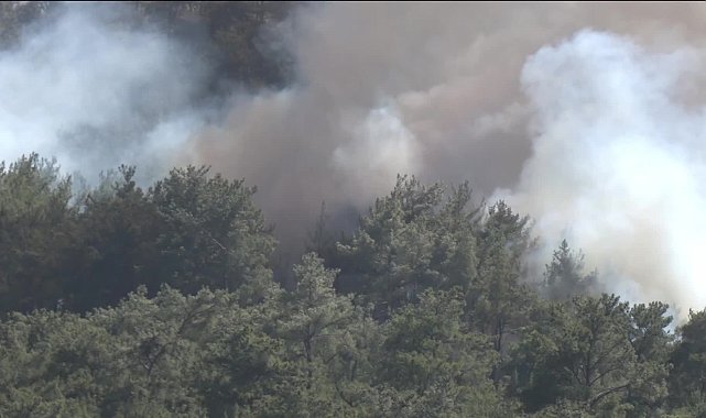 HABER: Tenzile AŞÇI / Akın KÜÇÜKKURT(İZMİR) - İzmir'in Menderes ilçesi Kuyucak Mahallesi ile Seferihisar Orhanlı Mahallesi arasındaki ormanlık alanda çıkan yangın devam ediyor. Yangın nedeniyle Seferihisar'da çok sayıda ev zarar gördü, hayvanlar telef oldu.İzmir'in Menderes ilçesi Kuyucak Mahallesi ile Seferihisar Orhanlı Mahallesi arasında ormanlık alanda henüz belirlenemeyen bir nedenle çıkan yangın devam ediyor.Orman Genel Müdürlüğüne ait 18 uçak, 10 helikopter, 40 arazöz, 10 su ikmal, 4 dozer ile AFAD ve belediye itfaiye ekipleri alevleri söndürmek için yoğun mücadele veriyor. Şiddetli rüzgarın etkisiyle büyüyen yangın, Seferihisar Orhanlı Mahallesinde evlere de sıçradı. Bölgede çok sayıda ev yangından zarar görürken, bazı evler ise tamamen alevlere teslim oldu.Mahalle sakinlerinden Mehmet Güçlü, "Evler yanıyor şu anda. Yangın diğer yandan geldi, fark etmedik. Tavukları ve köpeklerini alıyorlar. Bayağı ev yandı. Hayvanlarımızdan ölen var" diye konuştu.