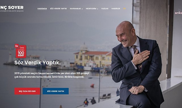“SÖZ VERDİK YAPTIK"İnternet sitesinin “Söz verdik yaptık” sekmesinin altında ise Başkan Soyer’in 2019 yılında göreve geldiğinde İzmir’e sözünü verdiği 165 projenin tamamlanan 144 projesine dair tüm içeriklerin yer aldığı Söz verdik yaptık kitabının dijital hali yer alıyor. Kitap, İzmir’de ve Türkiye’de yaşanan tüm zorluklara rağmen büyük bir iradeyle hayata geçirilen çalışmaları verilerle ortaya koyuyor.