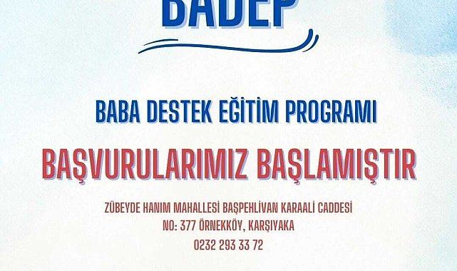 (İZMİR)- İzmir Büyükşehir Belediyesi, babalar için Baba Destek Eğitim Programı düzenliyor. Son başvuru tarihi 31 Ekim olan programda, 3-6 ve 7-11 yaşlarında çocuğu olan babalara yönelik atölye çalışmaları yapılacak.İzmir Büyükşehir Belediyesi Kadın Çalışmaları Şube Müdürlüğü, Anne Çocuk Eğitim Vakfı iş birliği ile Baba Destek Eğitim Programı'nı başlatıyor. Program kapsamında 3-6 ve 7-11 yaşlarında çocuğu olan babalara yönelik atölye çalışmaları yapılacak. Çocuklarda toplumsal cinsiyet eşitliği farkındalığını geliştirme, demokratik aile tutumları ve ilgili babalık konularını içeren atölye çalışmaları, haftada bir gün 2.5 saat olmak üzere 13 hafta boyunca devam edecek. Katılım için en geç 31 Ekim tarihine kadar 232. 293 33 72 numaralı telefondan başvuruda bulunulabilecek. Atölye çalışmaları, Karşıyaka Örnekköy'de bulunan İzmir Büyükşehir Belediyesi Sosyal Projeler Yerleşkesi'nde düzenlenecek.