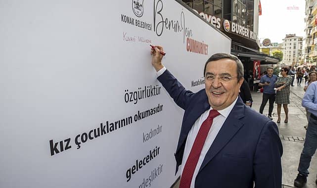 Konak Belediyesi’nin Cumhuriyet’in 100’üncü yıldönümü kutlamaları kapsamında Alsancak’ta düzenlediği “Benim için Cumhuriyet, 100. Yıl Düşünce Duvarı” etkinliğine katılan Başkan Batur, duvara kırmızı kalemle, “Kuvayı milliyedir” yazdı. “Cumhuriyet Gelecektir” diyerek Türkiye Cumhuriyeti’nin nice yüzyıllar göreceğini de dile getiren Başkan Batur, Cumhuriyetimizin kuruluşunun 100’üncü yılında hala aynı Kuvayı milliye ateşini yüreklerimizde taşıyoruz. Sonsuza Kadar Cumhuriyet, Sonsuza Kadar Atatürk diyoruz, demeye de devam edeceğiz” dedi.Cumhuriyet’in 100. kuruluş yıldönümünü kentin dört bir yanında düzenlediği etkinliklerle kutlayan Konak Belediyesi, Alsancak Kıbrıs Şehitleri Caddesi girişinde de anlamlı bir etkinlik düzenledi. Vatandaşın Cumhuriyet ile ilgili duygularını kelimelere dökebilmesi, Cumhuriyet sevgisinin hep birlikte yaşanması için Türkan Saylan Kültür Merkezi önüne “Benim için Cumhuriyet, 100. Yıl Düşünce Duvarı” yerleştirildi. Duvara ilk yazıyı Konak Belediye Başkanı Abdül Batur yazarken Alsancak bölgesi muhtarları da etkinlikte yer alarak duygu ve düşüncelerini yazıya döktü. İzmirlilerin büyük ilgi gösterdiği etkinlikte duvar kısa sürede dolarken vatandaşlar 100’üncü yılında Cumhuriyet’i “Bağımsızlık, Özgürlük, Kurtuluş, Aşk, Kardeşlik, Eşitlik, Adalet, insan Hakları” gibi aydınlık sözcüklerle tanımladı.“SONSUZA KADAR CUMHURİYET, SONSUZA KADAR ATATÜRK”Konak Belediye Başkanı Abdül Batur, düşünce duvarı kırmızı kalemle, “Kuvayı milliyedir” yazdı. Cumhuriyetin aynı zamanda gelecek demek olduğunu da vurgulayan Başkan Batur, memleketin kurtuluşunun Kuvayı milliye ruhuyla gerçekleştiğini ve Cumhuriyet’in 100. yılında kalplerin hala aynı Kuvayı milliye ateşiyle yandığını ifade ederek, “Kuvayı milliye, kurtuluş için tek yürek olmuş bir millete bağımsızlığını kazandıran ruhudur. Ulu Önder Mustafa Kemal Atatürk’ün bize en büyük emaneti olan Cumhuriyetimizin kuruluşunun 100’üncü yılında hala aynı Kuvayı milliye ateşini yüreklerimizde taşıyoruz. 'Sonsuza kadar Cumhuriyet, sonsuza kadar Atatürk' diyoruz, demeye de devam edeceğiz” diye konuştu.