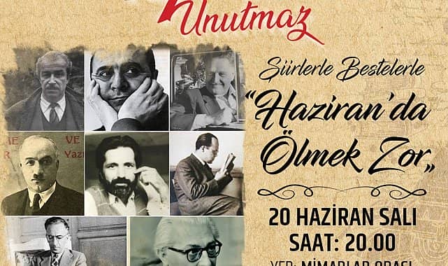 İzmit Belediyesi Kültür ve Sosyal İşler Müdürlüğü, ‘Şiirlerle Bestelerle Haziran’da Ölmek Zor’ etkinliğiyle haziran ayına iz bırakan şairleri anacak. İzmit Belediyesi, Aydili Sanat Derneği, 29 Ekim Kadınları Derneği Kocaeli Şubesi ile Bağımsız Yazarlar ve Şairler Derneği paydaşlığında düzenlenecek 'İzmit Unutmaz' etkinlikleri kapsamında haziran ayına iz bırakan şairler şiirleriyle anılacak. Haziran ayında hayata veda eden ve yine haziran ayında dünyaya gelerek Türk edebiyatına iz bırakan usta isimlerin şiirlerinin bestelenmiş halleri İzmit Belediyesi Kent Orkestrası tarafından seslendirilecek. 'Şiirlerle Bestelerle Haziran’da Ölmek Zor' etkinliği, 20 Haziran Salı günü saat 20.00’de Mimarlar Odası Taş Bina’da yapılacak.