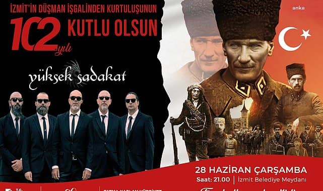 İzmit Belediyesi, kentin düşman işgalinden kurtuluşunun 102’nci yıl dönümünde Yüksek Sadakat’i ağırlayacak. İzmit, kentin düşman işgalinden kurtuluşunun 102’nci yılında çifte bayram coşkusu yaşayacak. Kurban Bayramı'nın ilk günü olan 28 Haziran Çarşamba günü saatler 21:00’i gösterdiğinde, Belediye Meydanı'nda sahneye Yüksek Sadakat grubu çıkacak.