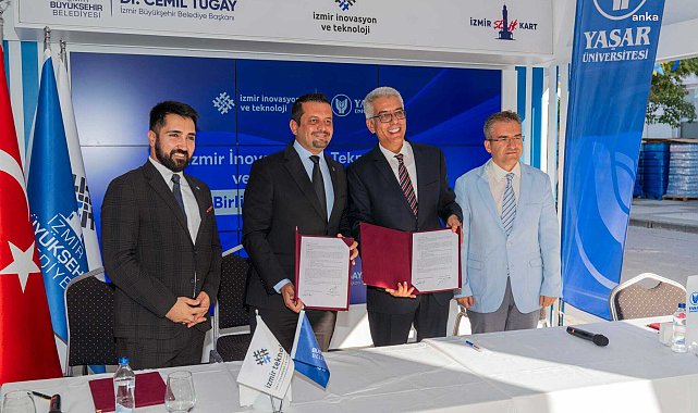 (İZMİR)- İzmir’in inovasyon ve teknoloji merkezi olması için çalışmalarını sürdüren İzmir Büyükşehir Belediyesi İzmir İnovasyon ve Teknoloji AŞ (İZTEKNOLOJİ) ile Yaşar Üniversitesi arasında iş birliği protokolü imzalandı. 93. İzmir Enternasyonal Fuarı’nda bulunan İZTEKNOLOJİ standında imzalanan protokol, kente dair kamusal hizmetlerin iyileştirilmesi ve yeni tasarımların hayata geçirilmesi amacıyla yapay zeka, mühendislik, iletişim ve tasarım gibi alanlarda ortak projeler gerçekleştirilmesini hedefliyor.İzmir Büyükşehir Belediyesi şirketlerinden İzmir İnovasyon ve Teknoloji AŞ (İZTEKNOLOJİ), Yaşar Üniversitesi ile iş birliği protokolü imzaladı. 93. İzmir Enternasyonal Fuarı’nda yer alan İZTEKNOLOJİ standında gerçekleştirilen imza törenine İzmir Büyükşehir Belediyesi İnovasyon ve Teknoloji AŞ Yönetim Kurulu Başkanı Andaç Pamuk ve Genel Müdür Emrecan Durmaz, Yaşar Üniversitesi Rektörü Prof. Dr. Levent Kandiller ve Rektör Yardımcısı Prof. Dr. Yiğit Kazançoğlu katıldı. Protokol kapsamında İzmir’in teknolojik gelişimine katkı sunacak çeşitli ortak akademik projeler yürütülecek ve nitelikli insan kaynağı yetiştirilmesine yönelik kurum içi eğitimler, ortak staj programları ve kent halkına açık eğitim içerikleri düzenlenecek. Böylelikle, İzmir’in kamusal hizmetlerinin teknolojiye yön verecek şekilde geliştirilmesi amaçlanıyor.“Güzel bir başlangıç ve geleceğe umut”