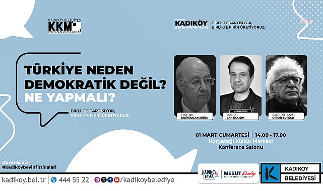 (İSTANBUL) - Kadıköy Belediyesi ve İdeaPolitik Enstitü tarafından Türkiye'nin güncel sorunlarına çözüm aramak amacıyla düzenlenecek “Kadıköy Beyin Fırtınaları” başlıklı panel dizisi başlıyor.Kadıköy Belediyesi ve İdeaPolitik Enstitü iş birliğiyle düzenlenen “Kadıköy Beyin Fırtınaları” panel dizisi, 1 Mart’ta başlıyor. Mart ayı boyunca her hafta sonu Kadıköy Belediyesi Kozyatağı Kültür Merkezi’nde gerçekleştirilecek panellerde, Türkiye’nin toplumsal meseleleri ele alınacak. Etkinlikler, katılımcıların fikir ve görüşleriyle aktif olarak katkı sunabileceği interaktif bir tartışma ortamı yaratmayı hedefliyor.Serinin ilk paneli, “Türkiye Neden Demokratik Değil? Ne Yapmalı” başlığıyla, 1 Mart Cumartesi günü 14.00-17.00 saatleri arasında İdeaPolitik Genel Direktörü ve siyaset bilimci Doç. Dr. Can Kakışım’ın moderatörlüğünde düzenlenecek. Panelde, Prof. Dr. Ersin Kalaycıoğlu ve gazeteci Orhan Bursalı, Türkiye’de demokrasinin karşı karşıya olduğu sorunları ve olası çözüm yollarını tartışacak.Panel dizisinde mart ayı içerisinde yapılacak diğer oturumlar ise şöyle:8 Mart Cumartesi, 18.00-21.00Konu: “Türkiye'de kadın neden baskı altında? Ne yapmalı?”