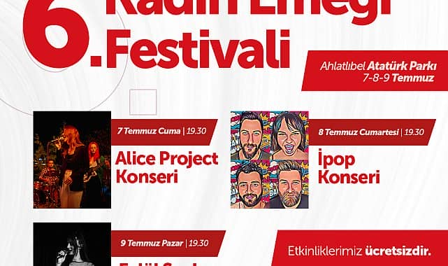 Çankaya Belediyesi'nin kadınlara gelir desteği sağlamak amacıyla hayata geçirdiği Kadın Emeği Festivali, bu yıl 6. kez Başkentlilerle buluşuyor. 7, 8, 9 Temmuz'da Ahlatlıbel Atatürk Parkı'nda düzenlenecek festival, konser, gösteri ve çocuklar için etkinliklere ev sahipliği yapacak.
