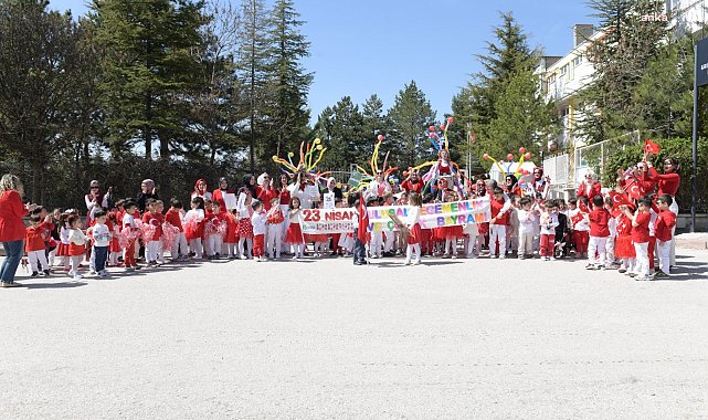 (ANKARA) - Kahramankazan Belediyesi Kreş ve Gündüz Bakımevi öğrencileri, kreşin bahçesinde düzenlenen etkinlikte 23 Nisan’ı kutladı, renkli gösterilerle eğlendi.Kahramankazan Belediyesi Kreş ve Gündüz Bakımevi'nde 23 Nisan kutlamaları erken başladı. Bahçede gerçekleştirilen etkinlik hem çocuklara hem de ailelerine unutulmaz anlar yaşattı. Renkli görüntülere sahne olan kutlamalarda çocuklar, Türk bayrakları ve balonlarla süslenen alanda bayramın neşesini doyasıya yaşadı.Palyaço gösterileri ve bando eşliğinde yapılan mini geçit töreni, etkinliğe ayrı bir renk kattı. Minikler oyunlar oynadı, dans gösterileri sundu ve şarkılar söyledi.