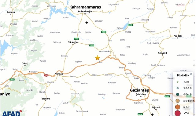 (ANKARA) - Afet ve Acil Durum Yönetimi Başkanlığı (AFAD), Kahramanmaraş’ın Pazarcık İlçesinde 5.0 büyüklüğünde deprem meydana geldiğini bildirdi.AFAD’dan verilen bilgiye göre, merkez üssü Kahramanmaraş'ın Pazarcık ilçesi olan deprem saat 09.31’de 5.0 büyüklüğünde, yerin 7 kilometre derinliğinde deprem meydana geldi.