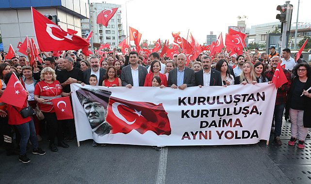 (İZMİR) - Karabağlar Belediyesi tarafından 19 Mayıs Atatürk'ü Anma, Gençlik ve Spor Bayramı etkinlikleri kapsamında düzenlenen “Bağımsızlık Yürüyüşü” büyük bir coşkuya sahne oldu. Tüm vatandaşları yarın Gündoğdu Meydanı'na davet eden Belediye Başkanı Helil Kınay, "Bugün yürüdük, yarın koşacağız. Cumhuriyetimizi hep birlikte büyüteceğiz" diye konuştu.Başkan Kınay, CHP İzmir Milletvekili Ümit Özlale, CHP Karabağlar İlçe Başkanı Volkan Gürboğa, CHP Kadın Kolları Genel Başkan Yardımcısı Derya Durnabaş ve ilçe yöneticileri, 19 Mayıs dolayısıyla ilçede düzenlenen "Bağımsızlık Yürüyüşü" öncesinde Poligon’dan Fahrettin Altay’a kadar esnafı ve vatandaşları ziyaret ederek Türk bayrağı dağıttı.Ziyaretler sırasında 19 Mayıs Pazartesi günü (yarın) saat 18.00’de Gündoğdu Meydanı’nda düzenlenecek büyük miting için de davet yapıldı.Bayrak dağıtımının ardından Fahrettin Altay Meydanı’nda toplanan kalabalık, ellerinde bayraklar ve meşalelerle Üçyol’daki 100. Yıl Uğur Mumcu Parkı’na yürüdü. Yürüyüşe AKUT ve çeşitli sivil toplum kuruluşları destek verirken, vatandaşlar da balkonlardan alkışlarıyla coşkuya ortak oldu.Yürüyüşün ardından 100. Yıl Uğur Mumcu Parkı’nda gerçekleşen buluşma, DJ performansıyla renklendi. Karabağlar sokakları müzikler eşliğinde 19 Mayıs coşkusunu yaşadı.Etkinlikte konuşan Kınay, “Bugün yürüdük, yarın koşacağız. Bizler bu ülkenin gerçek sahipleriyiz; gençler, kadınlar, emekçiler, çocuklar... Cumhuriyetimizi hep birlikte büyüteceğiz” ifadelerini kullandı. Özlale ise “Bugün sizlerle olmaktan büyük gurur duydum. 19 Mayıs’ta Gündoğdu Meydanı’nda da aynı kararlılıkla bir araya gelerek Silivri’ye güçlü bir mesaj vermenizi istiyorum. Şairin dediği gibi: ‘Akın var güneşe akın, güneşi zapt edeceğiz, güneşi zaptı yakın.’ Sizinle birlikte bu ülkeyi yeniden aydınlık günlere taşıyacağız” dedi.