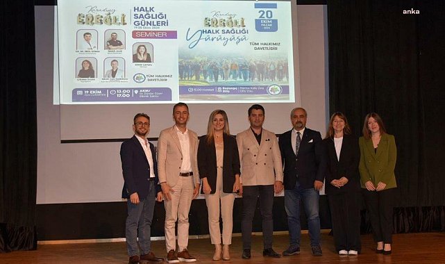 (ZONGULDAK) - Karadeniz Ereğli Belediyesi ev sahipliğinde hafta sonu "Halk Sağlığı Semineri" ve "Yürüyüş Günleri Programı" düzenlendi. Seminerde kas ve iskelet sorunları, nefes egzersizleri, beslenme konularında bilgilendirme yapıldı; yürüyüş programında ise katılımcılar Amfi Tiyatro'ya kadar yürüdüKaradeniz Ereğli Belediyesi ev sahipliğinde hafta sonu Halk Sağlığı Semineri ve Yürüyüş Günleri Programı düzenlendi. Cumartesi günü AKM Dr. Dündar Güçeri Etkinlik Salonu’ndaki seminerin açılış konuşmasını Belediye Başkan Vekili Cengiz Güneş yaptı. Etkinliğe katılan Op.Dr. Erol Günen, Doç.Dr. Eda Akbaş, Doç. Dr Emin Ulaş Erdem, Uzman Fizyoterapist İsmail Alak, Diyetisyen Simge Çaygeç, Yoga Eğitmeni Çiğdem Ülgen ve Belediye'yi temsilen Kültür Danışmanı Melih Can Tanrıkulu, sunum yaptı. İlk gün yoğun yağışa rağmen seminer programına katılan izleyiciler; açılış konuşmasının ardından mesleklerinde uzman isimlerden sık görülen kas – iskelet sistemi problemleri, egzersiz - ergonomi ve ağrı, kas iskelet hastalıklarının önlenmesinde beslenme, nefes egzersizleri ve meditasyon ile belediyenin düzenli olarak gerçekleştirdiği yürüyüş ve bisiklet yolları rotaları hakkında bilgiler aldı. Etkinlik sonunda açık oturum yapılarak katılımcıların sorularına yanıt verildi.Pazar günü ise Halk Sağlığı yürüyüşü için Marina Kafe önünde toplanan grup hava muhalefetine rağmen şemsiyeleriyle birlikte amfi tiyatroya kadar yürüdü. Amfi tiyatroda son bulan yürüyüş, mesleğinde uzman isimlerin tavsiyelerini paylaşması ile son buldu. Etkinliğe katılan Op.Dr. Erol Günen, Doç.Dr. Eda Akbaş, Doç.Dr Emin Ulaş Erdem, Uzman Fizyoterapist İsmail Alak, Diyetisyen Simge Çaygeç, Yoga Eğitmeni Çiğdem Ülgen ve Kültür Danışmanı Melih Can Tanrıkulu’na, Belediye Başkan Vekili Cengiz Güneş tarafından katkıları dolayısıyla çiçek takdim edildi.