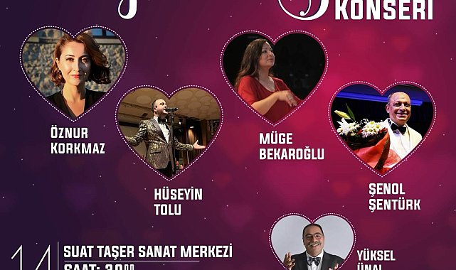 Dünya genelinde sevginin ve aşkın günü olarak kutlanan 14 Şubat'ta Karşıyakalı sevilen sanatçılar da aşk şarkılarını seslendirecekKarşıyaka Belediyesi tarafından Suat Taşer Sanat Merkezi’nde gerçekleştirilecek ‘14 Şubat Sevgililer Günü Konseri’nde en güzel aşk şarkıları seslendirilecek. Karşıyaka Belediyesi, 14 Şubat Sevgililer Günü’nde de anlamlı bir konsere ev sahipliği yapacak. Yüksel Ünal’ın kendine has sunumuyla, Suat Taşer Sanat Merkezi’nde gerçekleşecek konserde, Karşıyakalı sevilen sanatçılar Öznur Korkmaz, Hüseyin Tolu, Müge Bekaroğlu ve Şenol Şentürk sahne alacak. 14 Şubat Çarşamba günü saat 20.00’da başlayacak konser, tüm yurttaşların katılımına açık ve ücretsiz olacak.17 KİŞİLİK DEV ORKESTRAGecede sanatçılar, Pop Müziği’nden Türk Sanat Müziği’ne kadar farklı türlerden sevda şarkıları ile her kesime hitap eden bir repertuvar sunacak. Sanatçılara 17 kişilik dev bir orkestra eşlik edecek. Konserin sunumunu üstlenen Yüksel Ünal da okuyacağı şiirler ve anlatılarıyla buluşmaya renk katacak.Karşıyakalılara unutulmaz bir şölen yaşatmak için yoğun provalarını sürdüren sanatçılar “14 Şubat Sevgililer Günü’nde aşkın sanat haliyle Karşıyaka’da buluşacağız. En güzel sevda şarkılarını hep birlikte, coşkuyla seslendireceğiz. Unutulmaz bir geceye ortak olmak ve şarkılarımıza eşlik etmek isteyen herkesi bekliyoruz” dedi.