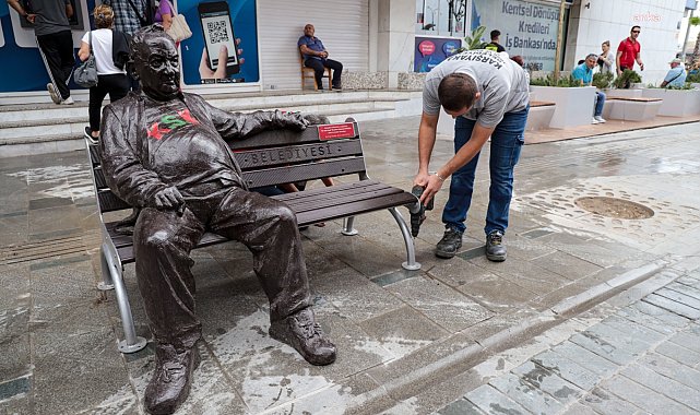 Karşıyaka Belediyesi tarafından Çarşı’da gerçekleştirilen yenileme çalışmalarının son dokunuşu, ‘Bir Baba Hindi’ heykeli oldu. Altyapı ve üstyapı yenilemelerinin tamamlanmasının ardından, heykel yeniden eski yerine konuldu.Karşıyaka Belediyesi, kent kültürüne katkı sunan ve kentle özdeşleşen isimleri kamusal alanlarda sokak, cadde, park ve meydanlarla, heykel ve rölyeflerle ölümsüzleştiriyor; kent hafızasını nesilden nesile aktarıyor. Bu heykellerin en çok sevilenleri arasında yer alan ve belki de en ünlüsü Bir Baba Hindi, ait olduğu yere geri getirildi.ŞANTİYEDE KORUNDUKarşıyaka'da doğup büyüyen ve yaşamını Karşıyaka Spor Kulübü'ne adayan Bir Baba Hindi lakaplı 70 yaşındaki Mustafa Baykara’nın heykeli yaklaşık 4 yıl önce Karşıyaka Çarşısı girişine yerleştirilmişti. Birebir boyutlardaki heykel sadece Karşıyakalılar tarafından değil tüm İzmirliler tarafından benimsenmiş, binlerce fotoğrafa da konu olmuştu. Karşıyaka Belediyesi’nin çarşı yenileme projesi sırasında zarar görmemesi adına kaldırılarak şantiye tesislerinde muhafaza edildi.YERİNE KAVUŞTUKSK taraftarlarının, Karşıyakalıların ve Karşıyaka’yı ziyaret edenlerin, çarşı yenileme çalışmaları süresince akıbetini merak ettiği Bir Baba Hindi heykeli yerine döndü. Mustafa Baykara’nın heykeli Karşıyaka Çarşıya gelenleri karşılamaya kaldığı yerden devam edecek.ÇARŞI’DA NELER YAPILDI?Karşıyaka Belediyesi, geçtiğimiz aylarda ilçenin kalbi konumundaki Çarşı’da uzun yıllardır süregelen sorunlara kalıcı çözüm sağlamak amacıyla yenileme çalışmaları başlatmıştı. Belediye ile Dokuz Eylül Üniversitesi Mimarlık Fakültesi iş birliğinde hazırlanan ‘Karşıyaka Çarşı Yenileme Projesi’ kapsamında ilk etap olarak belirlenen Kemalpaşa Caddesi’nde altyapı sistemleri tamamen yenilenmişti. Proje çerçevesinde birleşik sistem şeklinde hizmet veren kanalizasyon ve yağmur suyu hatlarının ayrılması işlemi de İZSU ekiplerince gerçekleştirilmiş, gerekli yerlere ızgaralar yerleştirilerek yağmur sularının güvenli bir şekilde deşarjı sağlanmıştı.MODERN DOKUNUŞLARÜstyapı çalışmaları kapsamında da Kemalpaşa Caddesi’nin zemini yenilenerek cadde üzerinde ağaçlandırma çalışmaları yapılmış, yeni aydınlatma araçları monte edilmişti. Caddeye belli aralıklarla saksılı oturma üniteleri, banklar ve parkletler yerleştirilmişti. Çalışmalar sırasında kaldırılan Amazon Kadın Heykelleri geçtiğimiz haftalarda yeniden yerlerine konulurken, son olarak Bir Baba Hindi heykelinin de yerine dönüşüyle caddedeki düzenlemelerin son dokunuşu yapılmış oldu.