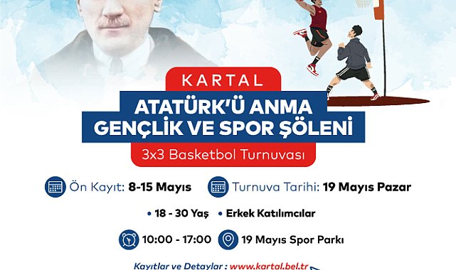 (İSTANBUL) - Kartal Belediyesi, 19 Mayıs Atatürk’ü Anma Gençlik ve Spor Bayramı’nı bir dizi etkinlikle kutlamaya hazırlanıyor. Gazi Mustafa Kemal Atatürk’ün gençliğe armağanı olan 19 Mayıs Atatürk’ü Anma Gençlik ve Spor Bayramı, ‘Spora Adım At, Kartal’a Hareket Kat’ sloganıyla ilçe genelinde kutlanacak. Kutlamalar, 19 Mayıs Pazar akşamı düzenlenecek Fener Alayı ve Derya Uluğ konseriyle zirveye ulaşacak.19 Mayıs kutlamaları kapsamında 18 Mayıs Cumartesi günü Ayak Tenisi Turnuvası 10.00-17.00 saatleri arasında Atalar Spor Kompleksi’nde; 19 Mayıs Pazar günü ise 3x3 Basketbol Turnuvası Karlıktepe 19 Mayıs Spor Parkı’nda 10.00-17.00 saatleri arasında yapılacak. Karlıktepe 19 Mayıs Spor Parkı, sporcuların katılımıyla gerçekleştirilecek Tenis Turnuvası’na da ev sahipliği yapacak.Kutlamalar, 19 Mayıs akşam saat 19.30’da başlayacak Fener Alayı ile devam edecek. Kazım Meydanı’ndan başlayacak Fener Alayı’nda binlerce kişi Türk bayrakları ve meşaleler eşliğinde Kartal Meydanı’na yürüyecek. Kartallılar, aynı akşam saat 21.00’de düzenlenecek Derya Uluğ konseri ile kutlamalara devam edecek. Kartal Belediye Başkanı Gökhan Yüksel, 19 Mayıs kutlamalarına tüm komşularını davet ederek, şunları söyledi:“Gazi Mustafa Kemal Atatürk’ün gençlere armağan ettiği bu bayramı Kartal’ın genelinde yaptığımız bir dizi etkinlikler ile kutlayacağız. 19 Mayıs coşkusunu gündüz düzenlediğimiz spor turnuvaları, akşam ise Fener Alayı ve konser ile kutlayacağız. Bu yıl 105. yılını kutlayacağımız 19 Mayıs Atatürk’ü Anma Gençlik ve Spor Bayramı kutlamalarına tüm komşularımızı davet ediyorum. 19 Mayıs’ın bu heyecanını ve coşkusunu hep birlikte yaşayalım.”