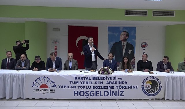 Kartal Belediyesi ve Tüm Yerel Yönetim Çalışanları Sendikası (Tüm Yerel-Sen) arasında toplu iş sözleşmesi (TİS) ek protokolü imzalandı. Ek protokol kapsamında memurlara yönelik ekonomik ve sosyal haklar ile ilgili iyileştirmeler yapıldı. Sosyal destek 15 bin TL’ye çıkarılırken, yılda 4 kez olmak üzere 5 bin TL ikramiye verilecek.Kartal Belediyesi ve Birleşik Kamu İş’e bağlı Tüm Yerel-Sen arasında yapılan ve halen yürürlükte olan toplu iş sözleşmesine ek olarak hazırlanan protokol düzenlenen törenle imzalandı. Kartal Belediyesi Hizmet Binası’nda düzenlenen ek sözleşme imza törenine, Kartal Belediye Başkanı Gökhan Yüksel’in yanı sıra Tüm Yerel-Sen Genel Mali Sekreteri ve Yönetim Kurulu Üyesi Burak Uzuntaş, Kartal Belediyesi Başkan Yardımcıları, Kartal Belediyesi Birim Müdürleri ve çok sayıda Kartal Belediyesi çalışanı katıldı.Tüm Yerel-Sen Genel Mali Sekreteri Burak Uzuntaş, Türkiye’deki ekonomik ve sosyal duruma dikkat çekerek imzalanan ek protokolle ilgili hem sendika temsilcilerine, hem de Başkan Yüksel’e teşekkür etti. Uzuntaş, “Burada ayrıca yöneticilerime, yöneticilerimin yanında tüm Kartal Belediyesi memur çalışanlarına ve Kartal Belediye Başkanımıza çok teşekkür ediyorum. Ek protokolün hepinize hayırlı olmasını diliyorum” dedi.Törende, yürürlükte olan TİS ek protokolüyle ilgili bilgilendirme yapıldı. Buna göre, memur sosyal denge tazminatı 15 bin TL net olarak açıklandı. Günlük yemek ücreti net 187 TL olurken, zabıta personelinin günlük yemek ücreti net 250 TL oldu. Ek protokole göre yılda 4 ikramiye ödenmesi konusunda uzlaşma sağlandı. Söz konusu 4 ikramiye her seferinde 5 bin TL olmak üzere Ramazan Bayramı, Kurban Bayramı, 30 Ağustos Zafer Bayramı ve 29 Ekim Cumhuriyet Bayramı’nda ödenecek.İmzalanan ek protokol ile ilgili açıklamaların ardından konuşmasını yapmak üzere mikrofonu alan Yüksel de şunları dile getirdi:“Kartal’da değer üretmeye, iş yapmaya, icraat üretmeye hep birlikte devam edeceğiz. İmkânlarımızı zorluyoruz, zorlayacağız. Çünkü sizlere güveniyoruz. En son sıkı bir pazarlıkla 14 bin TL almışlardı. Hiç pazarlık etmeye gerek yok 15 bin TL olarak düzeltmiş olalım. İnanın bir on beş dakika önce geldiğim için bir 30 Ağustos’ta anlaşmışlardı. Cumhuriyetin 100. yılında 29 Ekim Cumhuriyet Bayramı için de dördüncü ikramiyeniz sizlere hayırlı olsun. Gönül daha fazlasını yapmayı arzuluyor. Ben bu ekibe inanıyorum, bu ekibe güveniyorum. Önümüzdeki günlerin her birimiz için daha iyi geçeceğini umut ediyorum. Çünkü hep birlikte Kartal’da güzel işler yaptık, insanların hayatını kolaylaştıracak güzel projelere imza attık. Ev ziyaretleri yapıyorum. Gittiğimiz evlerde Mustafa Necati Etüt Merkezi’nin öğrencisini görüyorum. Bir yaptığım ev ziyaretinde kreş öğrencimizi görüyorum. Yine başka bir ev ziyaretinde sizlerin dokunduğu ya bir sağlık personelimizin ya da başka bir personelimizin dokunduğu aileleri görüyorum. Emeğinize sağlık biz büyük bir aileyiz, sizlerle güçlüyüz. Kartal’da yapacak çok işimiz var diyor, hepinizi çok seviyorum.”Konuşmaların ardından imza törenine geçilerek ek protokol imzalandı ve Başkan Yüksel ile Tüm Yerel-Sen Genel Mali Sekreteri Burak Uzuntaş protokole imza attı.