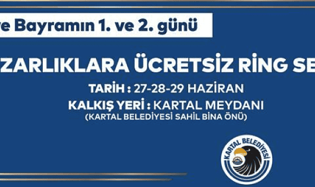 Kartal Belediyesi, Kurban Bayramı dolayısıyla mezarlıklara ücretsiz ulaşım hizmeti verecek.Kartal Belediyesi tarafından her yıl vatandaşlara ücretsiz olarak tahsis edilen araçlarla yapılan mezarlık ziyaretleri, bu yıl da arife günü ile bayramın 1 ve 2’inci günü olmak üzere 3 gün boyunca yapılacak. 27-29 Haziran günlerinde Kartallı vatandaşların mezarlık ziyaretlerini yapabilmeleri amacıyla düzenlenecek ücretsiz seferler ile vatandaşlar, sevdiklerinin mezarlarını ziyaret edebilecek. Kartal Meydanı’nda yer alan Kartal Belediyesi Sahil Hizmet Binası önünden hareket edecek servisler; Soğanlık, Yakacık, Ortadağ, Kurtköy, Yeni Şeyhli ve Osmangazi mezarlıklarına vatandaşların ulaşımını sağlayacak.