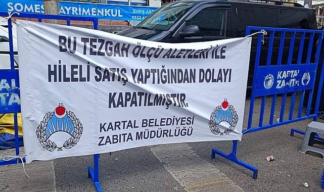 Kapatılan tezgâhlara Zabıta Müdürlüğü ekiplerince pankartlar asılarak verilen cezanın nedeni de vatandaşlara duyuruluyor.