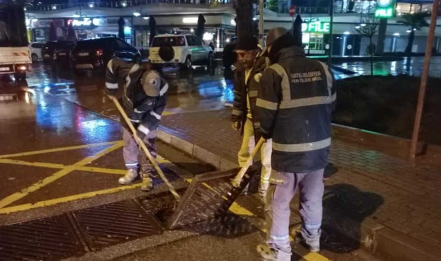 Kent genelinde düzenli aralıklarla mazgal temizliği yapan Kartal Belediyesi ekipleri, gece boyunca 10 ekip ve 35 kişi ile Kartallı vatandaşların mağdur olmaması için tüm ihbarlara anında müdahale etmek üzere yoğun mesai harcadı.