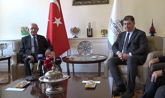(İZMİR)- CHP 7'nci Genel Başkanı Kemal Kılıçdaroğlu, İzmir Büyükşehir Belediye Başkanı Cemil Tugay'ı Egemenlik Evi'ndeki Başkanlık makamında ziyaret etti.CHP 7'nci Genel Başkanı Kılıçdaroğlu, İzmir Büyükşehir Belediye Başkanı Cemil Tugay'a ziyarette bulundu. Tugay, Kılıçdaroğlu'nu Egemenlik Evi'nin önünde karşıladı. Karşılamanın ardından başkanlık makamına geçildi. Kılıçdaroğlu'nun ziyaretine CHP İzmir İl Başkanı Şenol Aslanoğlu, CHP İzmir milletvekilleri Sevda Erdan Kılıç, Rıfat Nalbantoğlu ve Mahir Polat da eşlik etti. Ziyaretin ardından açıklama yapan Kılıçdaroğlu, "Her belediyenin olduğu gibi İzmir'in de sorunları var. Sorunsuz bir belediye yok. Ama biz Sayın Başkan'ın var olan sorunları akılcı politikalarla çözeceğine inanıyoruz. Kendisini hepinizin huzurunda kutluyorum ve görevinde başarılar diliyorum. Var olan politikalar başarıyla sürdürülecektir. Bundan arkadaşlarımın emin olmasını isterim" dedi.