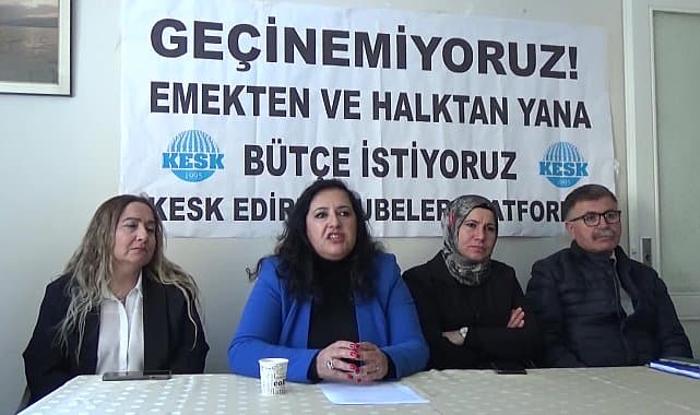 KESK MYK üyesi ve Hukuk, TİS, Uluslararası İlişkiler Sekreteri Zeynep Korkmaz; 2 Aralık’ta İstanbul ve Diyarbakır’da “Emekten Yana, Demokratik Halk Bütçesi İstiyoruz” sloganı ile yapılacak miting öncesinde "KESK olarak iktidarın kendi eliyle yarattığı enkazın tüm faturasını emekçilere, halka yıkmak istediği bu bütçeyi kabul etmiyoruz" dedi.KESK MYK Üyesi Zeynep Korkmaz, bugün Edirne’de 2 Aralık Cumartesi günü İstanbul ve Diyarbakır’da 'Emekten Yana, Demokratik Halk Bütçesi İstiyoruz' mitingi yapacaklarını duyurdu. Mitinglere destek çağrısında bulunan Korkmaz, "KESK olarak iktidarın kendi eliyle yarattığı enkazın tüm faturasını emekçilere, halka yıkmak istediği bu bütçeyi kabul etmiyoruz" dedi."YÜZBİNLERCE ÖĞRENCİNİN 1 ÖĞÜN ÜCRETSİZ YEMEĞİNİ BİLE KESTİLER"Korkmaz, şunları kaydetti:"Bu saldırı dalgası için seçimden hemen sonra düğmeye bastılar. Daha bir yıl önce edilen 'bu kardeşiniz bu görevde olduğu sürece, faiz her geçen gün, her geçen hafta, her geçen ay inmeye devam edecek’ sözlerini seçimleri kazanır kazanmaz unuttular. Nas söylemini rafa kaldırdılar. KDV’yi ÖTV’yi, harçları, tüm kredilerin faiz oranlarını fahiş oranlarda arttırdılar. Motorlu Taşıtlar Vergisini (MTV) iki kez aldılar. Ardından 1 Trilyon 120 milyarlık ek bütçenin de tüm yükünü vergilerle yine bize yıktılar. ‘Enflasyonu düşürmek için tüketimi kısmamız, tasarrufu arttırmamız şart’ dediler ama ne uçaklarından, makam arabalarından ne de lüks saray harcamalarından, üç dört yerden aldıkları maaşlarından vazgeçmediler. Ama okul öncesi eğitimdeki yüzbinlerce öğrencinin 1 öğün ücretsiz yemeğini bile kestiler."MİTİNGLERİMİZDE OMUZA OMUZA VERELİM"Son seçimden hemen sonra okul öncesi eğitimdeki bir buçuk milyon öğrencinin 1 öğün ücretsiz yemeğini bile kesenlerin yerel seçimlerden sonra ne yapacağını tahmin etmek için kâhin olmaya gerek var mı? KESK olarak iktidarın kendi eliyle yarattığı enkazın tüm faturasını emekçilere, halka yıkmak istediği bu bütçeyi kabul etmiyoruz. Halktan, emekten yana bir bütçe için öncelikle bütçe hakkımızın önündeki engellerin kaldırılmasını istiyoruz. Diyoruz ki, yüzde 1’in çıkarı için yüzde 99’u yok sayan adaletsizliğe, haksızlığa karşı çaresiz değiliz. Gelin 2 Aralık Cumartesi günü İstanbul ve Diyarbakır’da hayata mitinglerde emeğimize, ekmeğimize, geleceğimize, bütçe hakkımıza birlikte sahip çıkalım. Yoksulluk, işsizlik ve yağma düzenin çarkları arasında öğütülmeye karşı 'Emekten Yana, Demokratik Halk Bütçesi İstiyoruz' mitinglerimizde omuza omuza verelim."