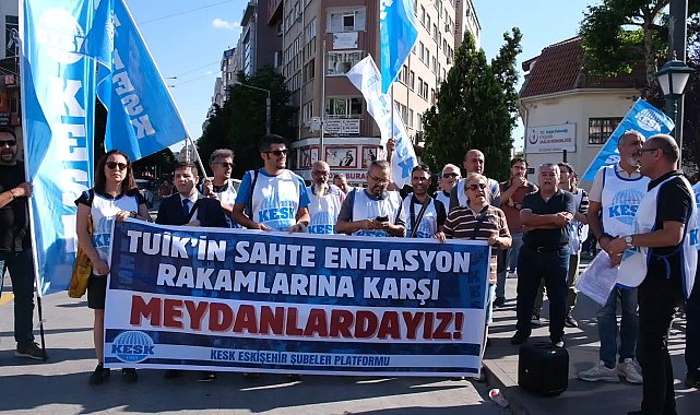 KESK Eskişehir Şubeler Platformu tarafından 1 Ağustos’ta başlayacak 2026- 2027 yıllarını kapsayan 8. Dönem Toplu Sözleşmesi sürecine ilişkin Köprübaşı’nda basın açıklaması yapıldı. TÜİK tarafından açıklanan enflasyon rakamlarına tepki gösteren Eğitim Sen Eskişehir Şube Sekreteri Süreyya Üner, "TÜİK rakamları yalan, yoksulluk gerçek. İnsanca yaşamaya yetecek bir ücret grevli toplu sözleşme istiyoruz" dedi.
