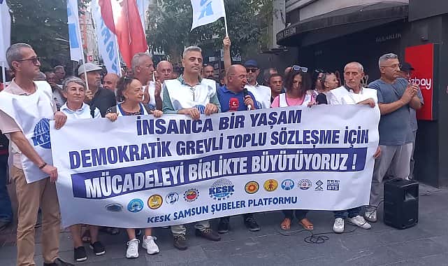 KESK Samsun Şubeler Platformu,, Kamu Görevlileri Hakem Kurulu’nun memur ve memur emeklilerinin 2024- 2025 yıllarını kapsayan toplu sözleşmesi için verdiği zam kararını protesto etti. İstiklal Caddesi’nde yapılan eylemde konuşan Samsun Şubeler Platformu Dönem Sözcüsü Bayram Çelik, "KESK olarak, laf salatası ile 25 milyonluk devasa bir kitleye sefalet, yoksulluk, güvencesizlik dayatan bu toplu sözleşmeyi kabul etmiyoruz" dedi.