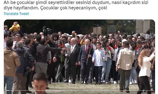 Millet İttifakı Cumhurbaşkanı Adayı Kemal Kılıçdaroğlu, Twitter hesabından, bugün Anıtkabir ziyareti sırasında çekilen bir videoyu paylaştı. Kılıçdaroğlu, “Ah be çocuklar şimdi seyrettirdiler sesinizi duydum, nasıl kaçırdım sizi diye hayıflandım. Çocuklar çok heyecanlıyım, çok” dedi.CHP Genel Başkanı ve Millet İttifakı Cumhurbaşkanı adayı Kemal Kılıçdaroğlu, Twitter hesabında; bugün yaptığı Anıtkabir ziyareti sırasında kendisini gördüğü için heyecanlanan çocukların sesinin duyulduğu bir videoyu paylaştı. Kılıçdaroğlu, “Ah be çocuklar şimdi seyrettirdiler sesinizi duydum, nasıl kaçırdım sizi diye hayıflandım. Çocuklar çok heyecanlıyım, çok” mesajını verdi.