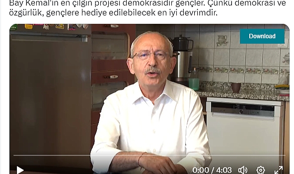 Millet İttifakı Cumhurbaşkanı Adayı ve CHP Genel Başkanı Kemal Kılıçdaroğlu, “Bay Kemal'in en çılgın projesi, demokrasidir gençler. Çünkü demokrasi ve özgürlük, gençlere hediye edilebilecek en iyi devrimdir” notuyla yeni bir video yayınladı. Yayınlanan videoda Kılıçdaroğlu; “Yaşasın demokrasi, yaşasın sevgi, yaşasın aşk, yaşasın Cumhuriyet, yaşasın Mustafa Kemal Atatürk; sen çok yaşa Türkiye’m” dedi.Millet İttifakı Cumhurbaşkanı Adayı ve CHP Genel Başkanı Kemal Kılıçdaroğlu, bugün saat 18.04’te Twitter hesabından; “Saat 19.00'da burada, Bay Kemal'in en çılgın projesini açıklayacağım” mesajını yayınlamıştı.Kılıçdaroğlu, saat 19.00’da Twitter hesabından “Bay Kemal'in en çılgın projesi demokrasidir gençler. Çünkü demokrasi ve özgürlük, gençlere hediye edilebilecek en iyi devrimdir” notuyla yeni bir video yayınladı. Kılıçdaroğlu, videoda; şunları söyledi:“MEDYAYI ÖNÜMDE ASKER GİBİ HİZALADIĞIM, TÜM KANALLARIN YAYINA ZORLANDIĞI BİR GÖRÜNTÜ BENİM ZAMANIMDA ASLA VE ASLA OLMAYACAK”“Dün yine büyük bir tuhaflık ile karşı karşıya kaldık. Türkiye’nin tüm kanalları, Erdoğan tarafından gasp edildi. Bir kişi karar verdi ve sizler televizyonlarınızdan oldunuz. Dünkü fotoğraf, bir ülkede demokrasi olmayınca o ülkenin düşeceği halleri çok iyi gösteriyordu. Fotoğraf bu. (Cumhurbaşkanı Erdoğan’ın dün akşam gazetecilerin sorularını yanıtladığı 30’a takın televizyon kanalında tek ve ortak yapılan yayının görselini göstererek) Çok net konuşayım, medyayı önümde asker gibi hizaladığım, tüm kanalların yayına zorlandığı bir görüntü benim zamanımda asla ve asla olmayacak. Hızlı reformlar yapacağız bu konuda ve bu reformları, öyle iktidar kendi başına falan da yapmayacak. Öyle yaparsak sonuç aynı olur. Medyanın tüm paydaşları bir araya gelecek ve bu medya rezaletini sonsuza kadar çözecek. Net etik kurallar, net kanunlar olacak.“BÜYÜK BİR SEVGİ İLE TÜRKİYE’Yİ KENETLEDİK. BUNU BEN DEĞİL, SİZ YAPTINIZ SEVGİLİ HALKIM”Gelelim, yaşadığımız seçim sürecine. Bu süreçte çok mutlu olduğum şeyler oldu ama biraz içimde ukde kalan bir iki şeyde oldu. Çok mutlu oldum; çünkü, büyük bir sevgi ile Türkiye’yi kenetledik. Bunu ben değil, siz yaptınız sevgili halkım. Bizim gibi düşünen veya düşünmeyen herkese kalbimizi açtık. Sevgiye boğduk ülkeyi. Saray öfkesinde boğulurken, bunu başarmış olmamızın ne kadar muhteşem bir şey olduğunu anlatmama gerek yok herhalde.“SİYASETİN ELİNİN, SONSUZA KADAR GİYİM KUŞAMINIZDAN ÇEKİLMESİNİ İSTİYORUM”Üzüldüğüm şeye gelince, belki de içimde ukde kalan tek şey; kadınların giyim kuşamı konusundaki kanunun çıkaramamış olmamızdır. Erdoğan, önce meseleyi sulandırdı. Sonra sıvıştı. Kadınları yine yarı yolda bıraktı. Neyse, seçimden sonra yapmak bize nasip olacak inşallah. Sevgili genç kadınlar, özellikle mütedeyyin kız evlatlarım kız kardeşliğiniz daim olsun istiyorum. Siyasetin elinin, sonsuza kadar giyim kuşamınızdan çekilmesini istiyorum. Gençlerin arasında esen barış rüzgarlarını kurumsallaştırmak istiyorum. En çok keyif alacağım şey, kadınların sahiplendirilmesinden bahsedilen bir terör örgütü partisinin AKP eli ile Meclis’e sokulmuş kadroların önünde bunu yapmak olacaktır. Onların yüzlerine baka baka haykıracağız. Bu kızlara asla dokunamayacaksınız. Onların özgürlüklerini asla alamayacaksınız.“HERKES, TÜRKİYE OLMAK İSTEYECEK. YAŞASIN DEMOKRASİ, YAŞASIN SEVGİ, YAŞASIN AŞK, YAŞASIN CUMHURİYET…”Gelelim seçim sonrasına, aylardır vizyonumuzu, projelerimizi, bulacağımız parayı, coşturacağımız ekonomiyi, uçuracağımız borsayı, ucuzlatacağımız gıdayı anlattık. Bunların hepsi çok önemli projeler. Ancak, tüm bunların tek bir esası, tek bir temeli vardır. O esas olmadan anlattıklarımızın hiçbiri olamıyor. O esas, demokrasidir. Yani tüm özgürlüklerimizdir. Sevgili yurttaşlarım, Bay Kemal’in en çılgın projesi demokrasiyi bu ülkeye geri getirmek olacak. Demokrasiye dönüş hikayemiz, bütün dünyayı heyecana boğacak ve demokrasi mücadelemiz belki de dünyaya yapacağımız en asil ihracat olacak. Herkes, Türkiye vakasından bahsedecek. Herkes, Türkiye olmak isteyecek. Adalete inanıyorsanız, demokrasiye inanıyorsanız, insan haklarına inanıyorsanız, uyuma, sevgiye inanıyorsanız o zaman Bay Kemal ile sonuna kadar yürümekten başka seçeneğiniz yok demektir. İlk turda dünyayı değiştirelim. Yaşasın demokrasi, yaşasın sevgi, yaşasın aşk, yaşasın Cumhuriyet, yaşasın Mustafa Kemal Atatürk; sen çok yaşa Türkiye’m.”
