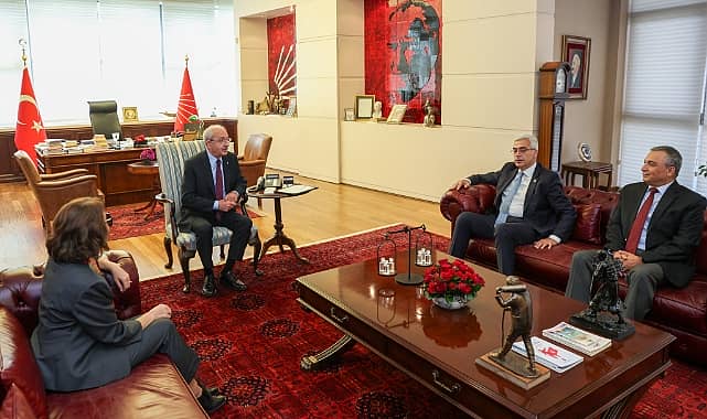 CHP Genel Başkanı Kemal Kılıçdaroğlu, Türk Demokrasi Vakfı (TDV) Başkanı ve Demokrat Parti İzmir Milletvekili Salih Uzun, TDV Mütevelli Heyeti Üyesi ve Gelecek Partisi Antalya Milletvekili Prof. Dr. Serap Yazıcı Özbudun ile TDV Mütevelli Heyeti Üyesi Aydın Sezer’i CHP Genel Merkezi’ndeki makamında kabul etti.
