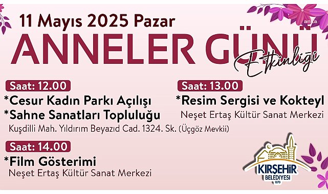 (KIRŞEHİR) - Kırşehir Belediyesi, 11 Mayıs Pazar günü Anneler Günü’nü bir dizi etkinlikle kutlayacak.Kırşehir’deki Anneler Günü etkinlikleri kapsamında 11 Mayıs 2025 Pazar günü saat 12.00’de Kuşdilli Mahallesi Yıldırım Beyazıd Caddesi 1324. Sokak’ta yapımı tamamlanan Cesur Kadın Parkı’nın açılışı gerçekleştirilecek. Açılış programında, Sahne Sanatları Topluluğu performans yapacak.Etkinlikler, saat 13.00’te Neşet Ertaş Kültür Sanat Merkezi’nde resim sergisi ve kokteyl ile devam edecek. Anneler Günü programı kapsamında Neşet Ertaş Kültür Sanat Merkezi’nde de saat 14.00’te film gösterimi yapılacak.Tüm vatandaşları etkinliklere davet eden Belediye Başkanı Selahattin Ekicioğlu, şunları kaydetti:“Anne sevgisi, insan yaşamının her evresinde var olan en anlamlı duygulardan birisidir. Onlar karşılıksız sevgileri, şefkatleri ve sonsuz özverileri ile başımızın tacıdırlar. Koşulsuz sevgi ve sorumluluklarının karşılığında annelerimiz hatırlanmayı, değer görmeyi, saygıyı ve takdiri herkesten daha çok hak etmektedir. Üzerimizde ödenmez hakları bulunan, sevgi, fedakarlık ve sabırlarını başka hiçbir değerle ölçemeyeceğimiz annelerimiz her zaman baş tacımızdır. Annelerimiz sevgi dolu yürekleriyle, sağduyulu, bilgece tavır ve yaklaşımlarıyla bizleri büyüten, yol gösterenlerdir. Annelerimiz; bitmez, tükenmez bir sevginin, hoşgörünün, özverinin kaynağıdır. Onlar bizim, yaşadıkları sürece öğretmenimiz, yaşam desteğimiz, mutluluğumuzun kaynağı, kötü günlerimizde sığınağımızdır. Haklarını asla ödeyemeyeceğimiz; üzerimizdeki gerçek hak sahibi annelerimizin Anneler Günü’nü kutluyor, tüm annelerimize saygı ve hürmetlerimi sunuyorum.”