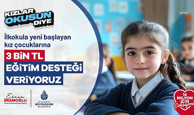 (İSTANBUL) - İstanbul Büyükşehir Belediyesi (İBB) tarafından Ekim ayında başlatılan ‘Kızlar Okusun Diye’ projesi sayesinde, imkanı olmayan kız çocukları okula devam edebiliyor. Proje kapsamında 10 bin aileye 3 bin TL nakdi destek sağlanıyor. Projenin ilk ayında 15 kız çocuğu okulla yeniden buluştu.İBB; şehit çocuğu, yetim, öksüz ve engelli öğrencilere verdiği “Sen Oku Diye” eğitim desteğinin ardından bu kez “Kızlar Okusun Diye” projesini hayata geçirdi. “Kızlar Okusun Diye” projesi kapsamında İstanbul’da ikamet eden ve ilkokula kayıt yaptırmış kız çocukları destekleniyor. İstanbul’da ikamet eden, sosyal desteğe başvurmuş, ihtiyaç sahibi olduğu belirlenen, hanede ilköğretim çağına gelmiş ve okul kaydı bulunan kız çocukları için 10 bin aileye 3 bin TL nakdi destek verilmeye başlandı.15 kız çocuğu okulla buluştu Konuya ilişkin İBB’den verilen bilgiye göre, proje sayesinde okul çağında olup ancak kaydı yapılmayan 15 kız çocuğu tespit edildi. Aileler ile görüşmeler sonucunda, maddi yetersizlikleri bulunan ailelere 3000 TL nakdi destek ile kırtasiye malzemesi sağlandı. Böylece 15 kız çocuğu eğitim hayatına devam etmeye başladı.Açıklamaya göre, İBB, herhangi bir gerekçe göstermeksizin kız çocuklarını okula göndermeyen aileler içinse eğitim ihmal raporu hazırlayarak ilgili kurumlara bilgi veriyor.