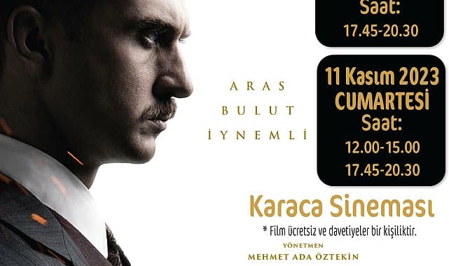 Mehmet Ada Öztekin’in yönetmenliğini yaptığı, yetenekli oyuncu Aras Bulut İynemli’nin ise Mustafa Kemal Atatürk’ü canlandırdığı filmin gösterimleri Karaca sinemasında yapılacak. Mustafa Kemal Atatürk’ün çocukluk yıllarından Milli Mücadele’ye giden yaşam öyküsünün anlatıldığı filmin 10 Kasım’daki gösteriminde Konak Belediye Başkanı Abdül Batur da seyirciler arasında yer alacak. Karaca sinemasında, 10 Kasım tarihinde saat 17.45 ve 20.30 seansları, 11 Kasım’da ise 12.00, 15.00, 17.45 ve 20.30 seansları için sınırlı sayıdaki ücretsiz davetiyeler, 7 Kasım Salı günü saat 18.00’den itibaren Türkan Saylan Kültür Merkezi’nden temin edilebilecek.