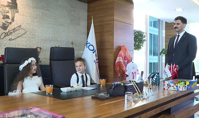 (ANTALYA) - Konyaaltı Belediye Başkanı Cem Kotan, 23 Nisan Ulusal Egemenlik ve Çocuk Bayramı’nda koltuğunu, Defnesu Eral ve Uzay Ulusoy’a emanet etti. Küçük başkanların taleplerini dinleyen Başkan Kotan, “Unutmayın, sizin burada bir Cem Ağabey’iniz var” dedi.Ulu Önder Mustafa Kemal Atatürk'ün çocuklara armağan ettiği 23 Nisan Ulusal Egemenlik ve Çocuk Bayramı dolayısıyla Başkan Kotan, başkanlık koltuğunu çocuklara devretti. Bir günlüğüne başkan olan Defnesu ve Uzay, Konyaaltı'na ilişkin düşüncelerini paylaşırken, yapılmasını istedikleri bazı çalışmaları da dile getirdi.Başkan Kotan, Gürsu Mahalle Muhtarı Özlem Saday'ın koltuğu sembolik olarak devrettiği Toprak ile de görüntülü bir görüşme yaptı. Toprak'ın Gürsu Mahallesi ile ilgili taleplerini dinleyen Kotan, bu talepleri de tek tek not aldı.Çocukların, parklarla ilgili sorularını yanıtlayan Başkan Kotan, şunları söyledi:“Parklarla ilgili aydınlatma çalışmalarımız devam ediyor. Büyük parklarımıza güvenlik kameraları taktık, parklarımız 24 saat boyunca izlenecek. Hem temizliğine hem güvenliğine büyük önem veriyoruz. Bu kenti muhtarlarımızla birlikte yönetiyoruz. Muhtarlarımıza da senin vasıtanla çok selamlarımı iletiyorum. Önümüzdeki günlerde Muhtarlar Meclisi yapacağız. Seçilmiş muhtarlarımızla bu kenti çok güzel yönetiyoruz. Muhtarlık ve belediye koordineli şekilde çalışmaya devam ediyor. Senin aracılığınla Atatürk’ü ve silah arkadaşlarını minnet ve rahmetle anıyorum. İyi ki bu güzel ülkeyi bize armağan ettiler. Her zaman sizi koruyup kollayacağız, her zaman sizin önünüzü açacağız. Geleceğe umutla bakmanız için elimizden geleni yapacağız.”