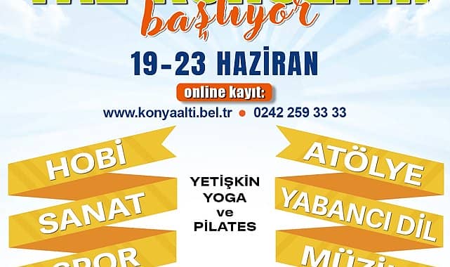 Konyaaltı Belediyesi’nin çocuk ve yetişkinlere yönelik açtığı yaz kurslarına başvurular başladı. 19 branşta gerçekleştirilecek kurslar için başvurular 23 Haziran’da sona erecek.Konyaaltı Belediyesi Sanat Eğitim Merkezi (KONSEM) ve Spor İşleri Müdürlüğü bünyelerinde çocuk ve yetişkinlere yönelik açılan yaz dönemi kurslarına başvurular başladı. Kursiyerler, hobi, sanat, spor, atölye, yabancı dil ve müzik alanlarında uzman eğitmenler tarafından eğitim alacak.19 BRANŞTA KURSCimnastik, bale, çocuk yoga, yetişkin yoga, çocuk pilates (esneklik), yetişkin pilates, zumba, resim, el sanatları, seramik, İngilizce, Rusça, Almanca, drama, piyano, gitar, bağlama, halk oyunları ve modern dans branşlarına başvurular, 23 Haziran’a kadar yapılabilecek. Kontenjanla sınırlı olan kurslara başvuru, 'www.konyaalti.bel.tr' adresi üzerinden online olarak gerçekleştirilebilecek.YAZ BOYU SÜRECEKYaz boyu sürecek yaz kurslarını çok önemsediklerini, kurslar ile çocukların hem eğlenebileceğini hem de yeni yetenekler kazanacağını dile getiren Konyaaltı Belediye Başkanı Semih Esen, yetişkinlerin de kurslar sayesinde yeni hobiler kazanacaklarını kaydetti. Başkan Esen, “Bulunduğumuz coğrafyada ne yazık ki bu tür aktivitelere ulaşmak çok zor. Sunmuş olduğumuz kurslarımız her yaştan binlerce insana ev sahipliği yapacak” dedi.