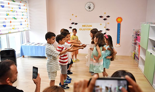 (ANTALYA) - Konyaaltı Belediyesi bünyesinde hizmet veren kreş ve gündüz bakımevlerinde eğitim gören çocuklar karne heyecanı yaşadı. Konyaaltı Belediyesi'ne bağlı Toros, Gürsu, Uncalı ve Hurma Kreş ve Gündüz Bakımevleri’nde eğitim gören minikler karnelerini aldı. Karne töreni öncesi hep bir ağızdan “Andımız”ı okuyan minikler, karnelerini aldıktan sonra da sevinçlerini aileleriyle beraber yaşadı. Çocukların eğitimini önemsediklerini dile getiren Başkan Cem Kotan, “Kreşlerimizde eğitim gören öğrencilerimiz karnelerini aldılar. Onlar gibi bizler de çok sevinçliyiz. Kreşlerimizde onların iyi bir temel eğitim alması için elimizden geleni yaptık. Dilerim çok güzel bir eğitim hayatları olur. Tüm çocuklarımıza başarılar diliyorum” dedi.