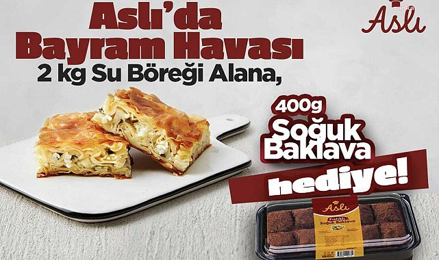 (İSTANBUL)- Türkiye’nin önde gelen kafe-fırın zincirlerinden Aslı, Kurban Bayramı’na özel hazırladığı kampanyayla sofraları lezzetle donatıyor. Bayram süresince tüm Aslı mağazalarında geçerli olacak kampanya kapsamında 2 kilogram el açması su böreği alan misafirlere, 400 gram Antep fıstıklı soğuk baklava hediye ediliyor.Eksim Holding çatısı altında faaliyet gösteren Aslı, Kurban Bayramı’na özel kampanyasıyla misafirlerini geleneksel ve yenilikçi tatlarıyla buluşturuyor. Bu kapsamda 2 kilogram el açması su böreğine 400 gram Antep fıstıklı soğuk baklava hediye eden Aslı, misafirlerini hesaplı ve lezzeti bol bir bayram fırsatıyla karşılıyor.El emeğiyle üretiliyorDudullu tesisinde her gün taptaze olarak hazırlanan, el açması su börekleriyle öne çıkan Aslı; özenle hazırlanmış Antep fıstıklı soğuk baklavasıyla da damaklarda iz bırakıyor.Türkiye genelinde 36 mağazayla hizmetteAslı, İstanbul başta olmak üzere Türkiye’nin seçkin lokasyonlarında konumlanan 36 mağazası ve 350’yi aşkın çalışanıyla, misafirlerine yıl boyunca hizmet veriyor. Bayram sofralarına kalite ve lezzet katmak isteyen herkesi mağazalarına davet eden Aslı, bu özel kampanyasıyla hem ekonomik hem de her damak zevkine hitap eden bir fırsat sunuyor.ADVERTORIAL YAYIN