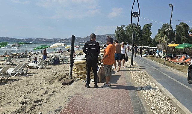 (AYDIN)- Kuşadası Belediyesi Zabıta Müdürlüğü ekipleri, plajlarda uygulanan ücretsiz şezlong ve şemsiye kuralına uymayan işletmelere göz açtırmıyor. Ekipler tarafından düzenli aralıklarla yapılan denetimlerde halka şezlong ve şemsiye satışı yapan işletmelere cezai işlem uygulanıyor.Kuşadası Kaymakamlığı ve Kuşadası Belediyesi arasında 20 Mayıs'ta imzalanan protokol sonrası, Belediye Başkanı Ömer Günel tarafından ilçe sınırları içinde bulunan 401 bin 499 metrekarelik alandaki plajlarda, şezlong ve şemsiyeler halka ücretsiz kullanıma sunuldu. Protokolün ardından plajlarda halka ücretli şezlong ve şemsiye satışı yapan işletmeleri tespit edip vatandaşların herhangi bir mağduriyet yaşamaması için zabıta ekipleri, belirli aralıklarda denetimler gerçekleştiriyor. Son olarak 21 Temmuz'da Karaova Mahallesi sahilinde ekipler tarafından gerçekleştirilen denetimler esnasında, bir işletmenin halka şezlong ve şemsiye satışı yaptığı tespit edildi. İşletme sahibine ceza uygulandı. Aynı zamanda kullanımda olmayan şezlonglar ekipler tarafından toplandı.