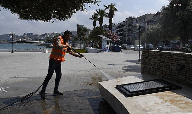 Kuşadası Belediyesi Temizlik İşleri Müdürlüğü, farklı mahallelerde eş zamanlı yürüttüğü hijyen ve dezenfeksiyon çalışmaları kapsamında son olarak İsmail Cem Dostluk ve Barış Meydanı’ndan Atatürk Meydanı’na kadar detaylı temizlik çalışması gerçekleştirdi.Kuşadası Belediyesi’ne bağlı Temizlik İşleri Müdürlüğü ekipleri, kamuya açık alanlarda düzenli olarak gerçekleştirdiği hijyen ve dezenfeksiyon çalışmalarını ara vermeden sürdürüyor. Turizm sezonunun başlaması ile birlikte nüfus yoğunluğunun arttığı kent merkezi ve sahil bandına odaklanan ekipler tarafından son olarak İsmail Cem Dostluk ve Barış Meydanı’nda temizlik çalışması yapıldı.Çalışmada kent mobilyaları ile çöp sepetleri çevreye zarar vermeyen güçlendirilmiş bitkisel deterjanlar kullanılarak hijyenik hale getirildi. Ekipler, İsmail Cem Dostluk ve Barış Meydanı’ndan başlayarak Atatürk Meydanı’nı da kapsayan sahil bandında 90 derecelik sıcak suyla yıkama işlemi gerçekleştirdi. Kuşadalılar, ekiplerin titiz çalışmalarından memnun olduklarını belirtti.