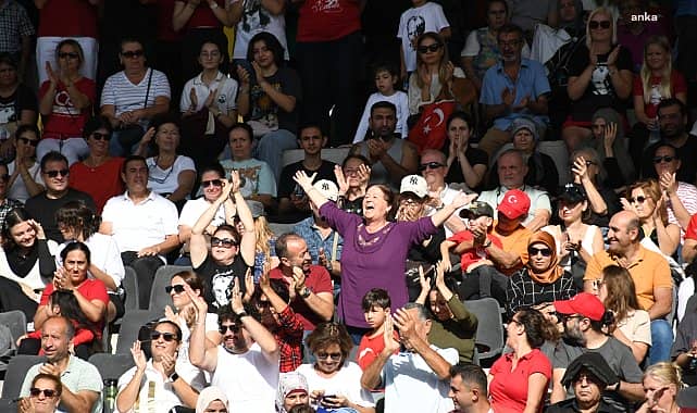 Kuşadası’nda Cumhuriyet’in 100’üncü kuruluş yıl dönümü kutlamalarına aynı anda 700 öğrencinin oynadığı zeybek gösterisi damga vurdu. Gösteri sonunda ellerinde Türk bayraklarıyla resmi geçit törenine katılan öğrenciler, Özer Türk Stadı'nı dolduran Kuşadalılar tarafından ayakta alkışlandı.