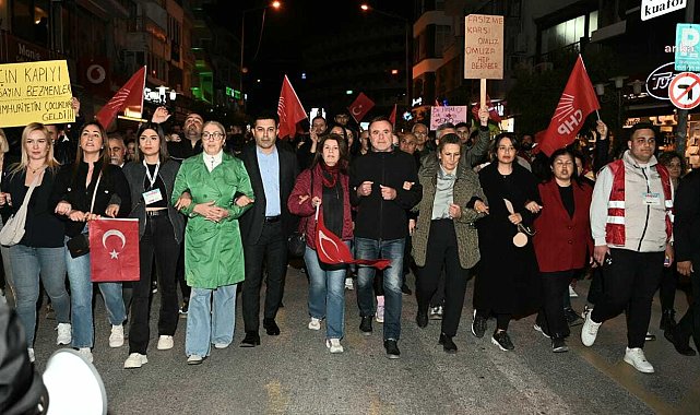 (AYDIN) - Kuşadası’nda, tutuklanan ve görevinden uzaklaştırılan Ekrem İmamoğlu’na destek olmak için CHP Kuşadası İlçe Örgütü tarafından ikinci kez Demokrasi ve Dayanışma Yürüyüşü düzenlendi. Korteje katılanlar, taşıdıkları pankart ve attıkları sloganlarla bu sefer İsmail Cem Dostluk ve Barış Meydanı’na yürüdü.Demokrasi ve Dayanışma Yürüyüşü’ne katılmak için saat 20.30’da CHP İlçe Örgütü binası önünde toplanan Kuşadalılar, hareket etmeden önce hep bir ağızdan İstiklal Marşı’nı, ardından da Atatürk’ün Gençliğe Hitabesi’ni okudu. Yürüyüşe CHP Kuşadası İlçe Örgütü Başkanı Mehmet Gürbilek ve parti yöneticileri, Belediye Başkanı Ömer Günel, belediye başkan yardımcıları ve belediye meclis üyeleri ile kentteki birçok sivil toplum kuruluşu, dernek ve siyasi parti katıldı.Coşkulu kalabalık, İnönü Bulvarı boyunca yürüdükten sonra İsmail Cem Dostluk ve Barış Meydanı’na vardı. Yürüyüş sırasında Kuşadalılar, taşıdıkları pankart ve attıkları “Hak, hukuk, adalet” sloganlarıyla, Silivri'de tutuklu olan İmamoğlu ve yol arkadaşlarına desteklerini yineledi.“Yarınlarımız için bu mücadeleye hep birlikte sahip çıkacağız”Demokrasi Yürüyüşü’nün ardından basın açıklaması yapan CHP Kuşadası İlçe Örgütü Başkanı Mehmet Gürbilek, “Kıymetli yol arkadaşlarım, artık ülkemizde hiçbir vatandaşımızın yasal anlamda güvencesi kalmadı. Bu nedenle demokrasi ve dayanışma mücadelemiz, yalnızca CHP’nin mücadelesi olmaktan çıktı. Artık ülkemizin ve çocuklarımızın geleceğiyle ilgili ciddi endişeler taşıyoruz. Aydınlık yarınlar için artık bu mücadeleye hep birlikte sahip çıkacağız” diye konuştu.