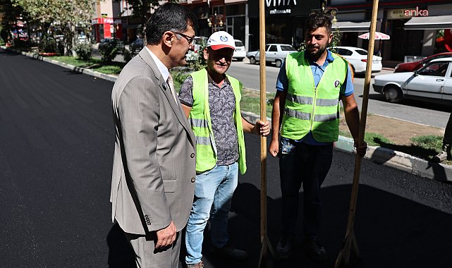 (KÜTAHYA)- Kütahya Belediye Başkanı Eyüp Kahveci, Menderes Caddesi’nde sürdürülen sıcak asfalt yenileme çalışmalarını yerinde inceledi. Belediye Başkanı Eyüp Kahveci, Menderes Caddesi’nde sürdürülen sıcak asfalt yenileme çalışmalarını yerinde incelemek üzere gerçekleştirdiği ziyarette, personel ve civarda bulunan esnafla bir araya geldi. Fen İşleri Müdürlüğü tarafından gerçekleştirilen çalışmalar hakkında bilgi alan Başkan Kahveci, vatandaşların daha konforlu ve güvenli bir ulaşım imkanına kavuşması için ekiplerin gece gündüz sahada olduğunu söyledi. Başkan Kahveci, esnafla bir araya geldi